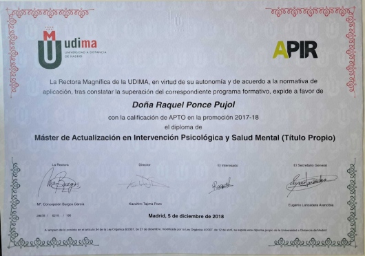 ¿Cuáles son las principales especialidades de Raquel Ponce Pujol?Raquel Ponce Pujol es psicóloga. Te mostramos algunos de los servicios que ofrece gracias a su trayectoria y amplia experiencia: Primera visita Psicología, Diagnóstico y tratamiento para trastornos de ansiedad, Psiconutrición, Tratamiento para trauma complejo, Diagnóstico y tratamiento para la depresión, Diagnóstico y tratamiento del trastorno obsesivo compulsivo (TOC), Diagnóstico y tratamiento de los trastornos alimentarios, Mindfulness, Consulta de sexología, Psicología afirmativa LGTBIQ+.