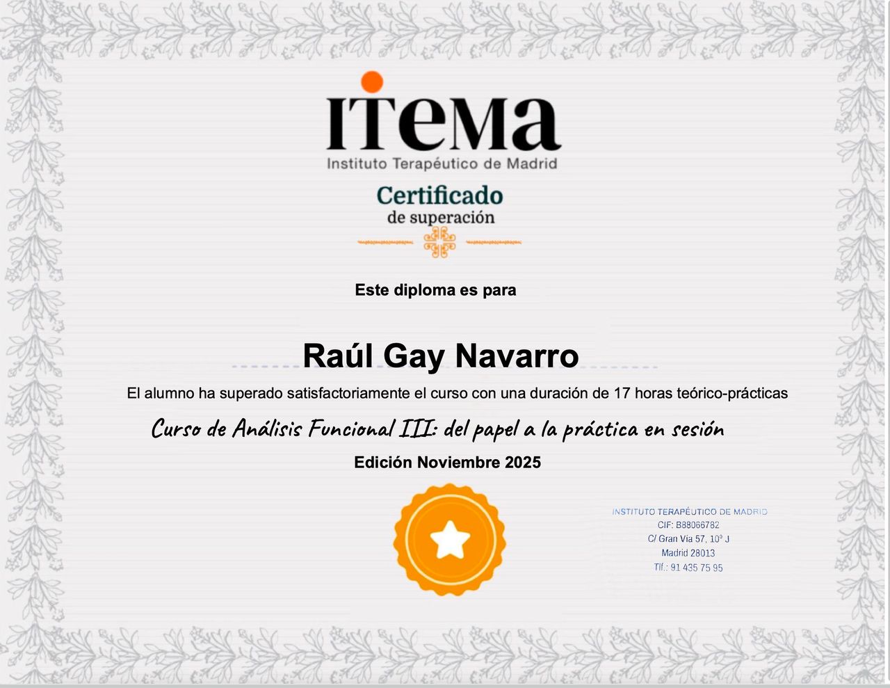 Raúl es un excelente psicólogo. Destaca por su profesionalidad, su enfoque claro y su capacidad para crear un espacio seguro y de confianza. Su acompañamiento es respetuoso y eficaz, ayudando a comprender y trabajar los procesos personales con profundidad y sensibilidad.