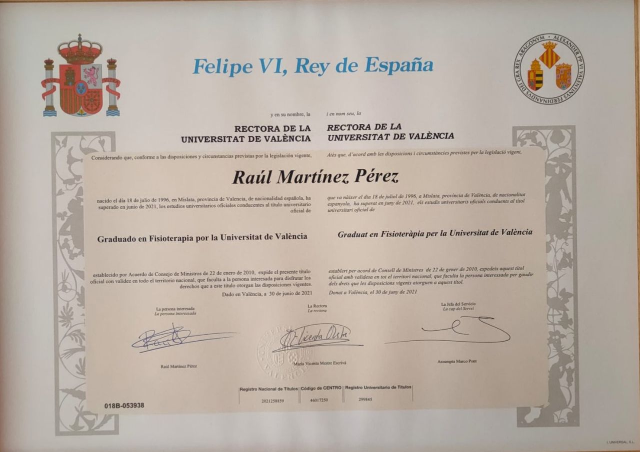 Raúl Martínez es fisioterapeuta especializado en la readaptación y prevención de lesiones en deportes de fuerza, como powerlifting, halterofilia y entrenamientos de alto rendimiento. Graduado en Fisioterapia por la Universidad de Valencia, ha completado un Máster Oficial en Recuperación Funcional, un Máster en Terapia Manual con enfoque neuro-ortopédico y formación avanzada en fisioterapia invasiva y ecografía musculoesquelética.