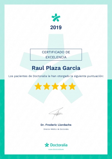 ¿Cómo puedo reservar una cita con Raul Plaza Garcia?El calendario que muestra Raul Plaza Garcia en Doctoralia está actualizado en tiempo real, por lo que solo tienes que elegir qué día y hora te va mejor de entre las disponibles. La reserva es gratuita, y además recibes un recordatorio antes de la visita.