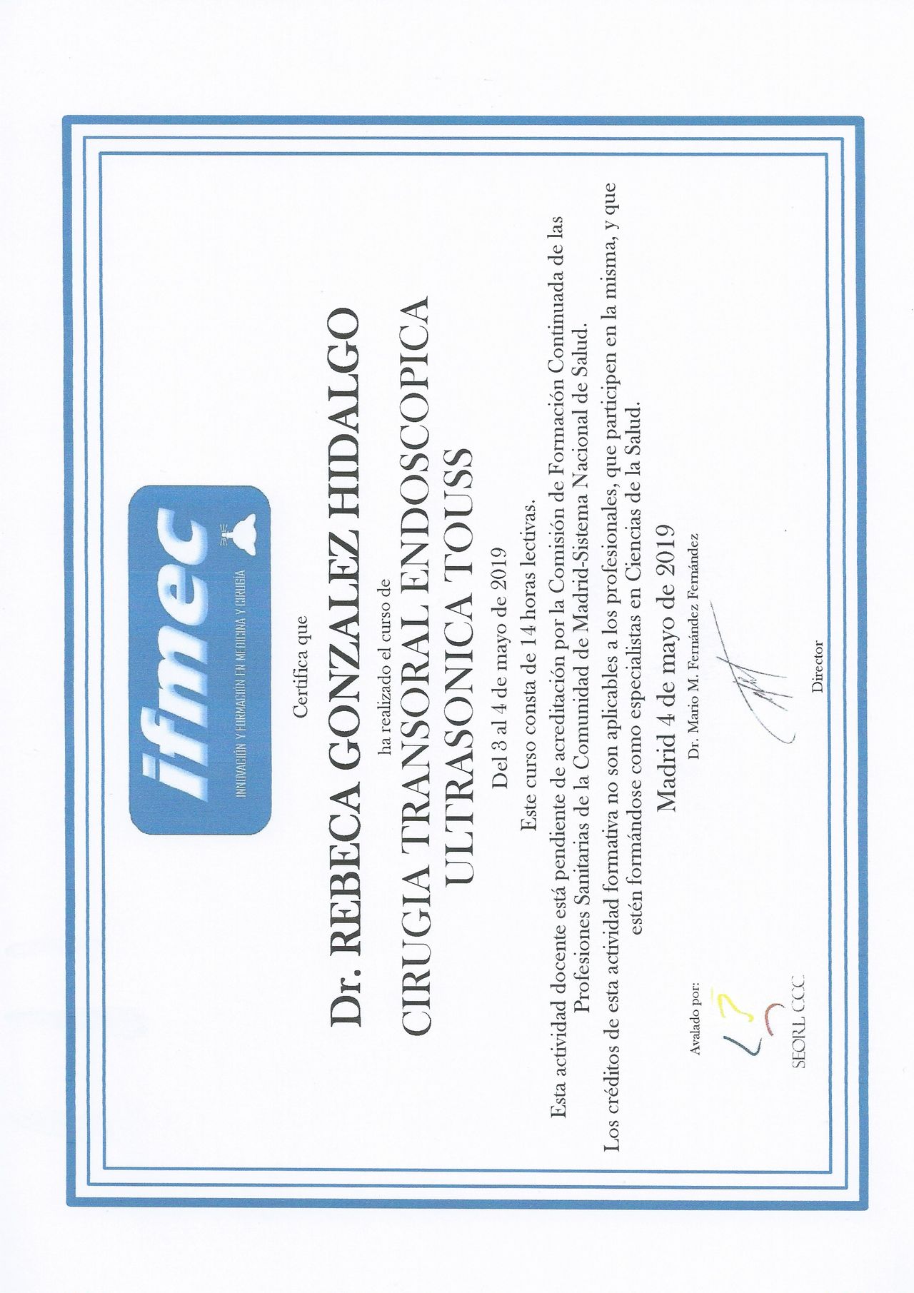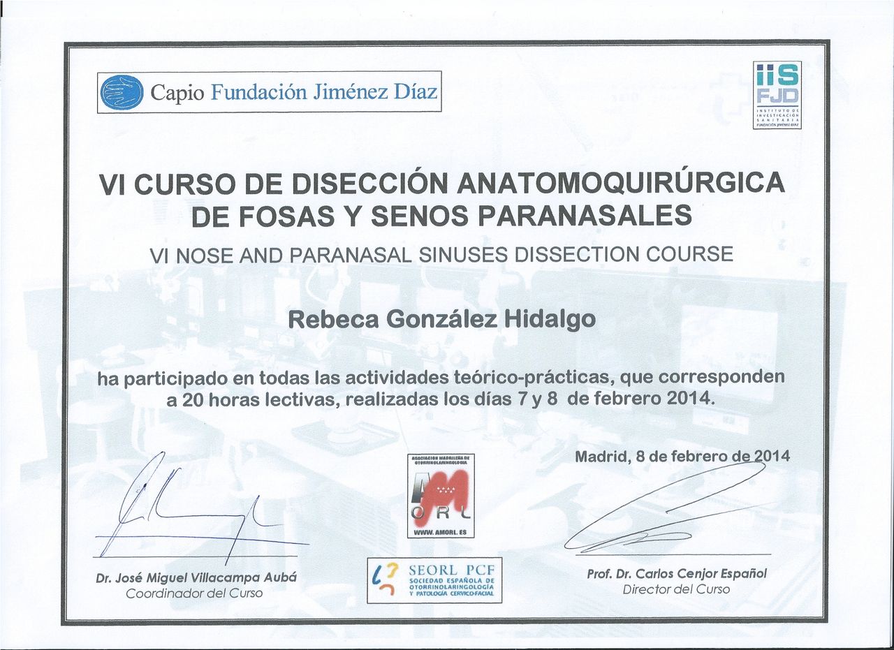 ¿Cuáles son las principales especialidades de Rebeca Gonzalez Hidalgo?Rebeca Gonzalez Hidalgo es otorrinolaringóloga. Te mostramos algunos de los servicios que ofrece gracias a su trayectoria y amplia experiencia: Primera visita Otorrinolaringología, Amigdalectomía con o sin adenoidectomía, Visitas sucesivas Otorrinolaringología, Audiometría, Fibroscopia de cavum y laringe, Segunda opinión médica, Rinoplastia estética, Frenoplastia lingual, Cirugía de cornetes, Visita online de seguimiento.