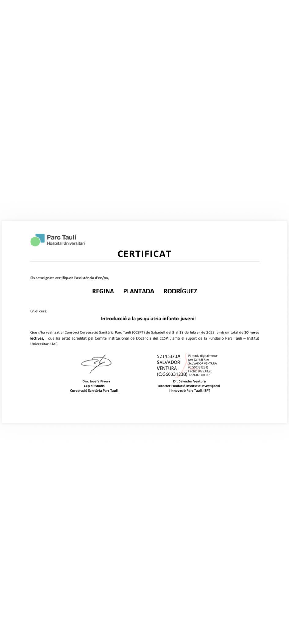 Actualmente continúo en formación constante para ofrecer una atención actualizada y de calidad.