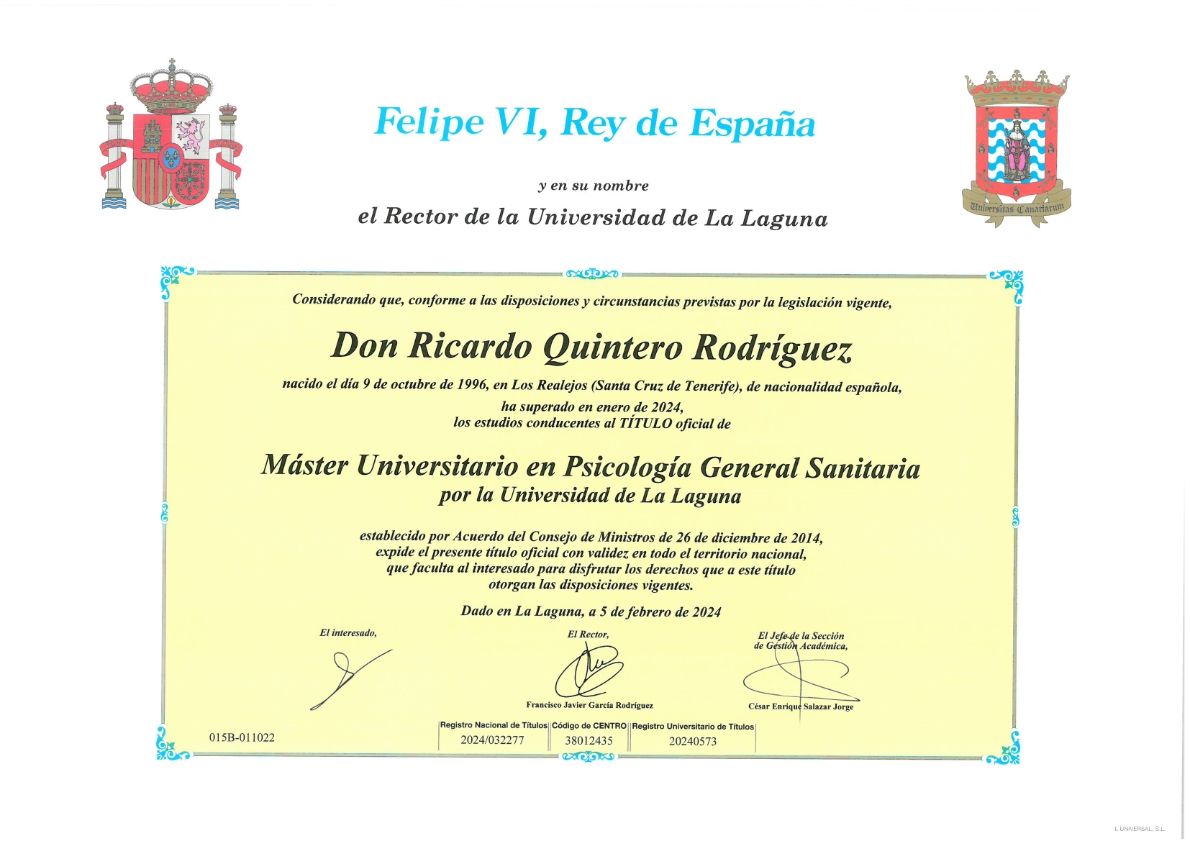¿Para cuándo podría visitarme con Ricardo Quintero Rodríguez?A veces Ricardo Quintero Rodríguez tiene algunas horas disponibles dentro de la misma semana o para la siguiente. Consulta su calendario: verás la primera hora que tiene disponible, ya que se actualiza en tiempo real. Si no te va bien esa primera hora, comprueba otros días. La reserva siempre es inmediata y gratuita.