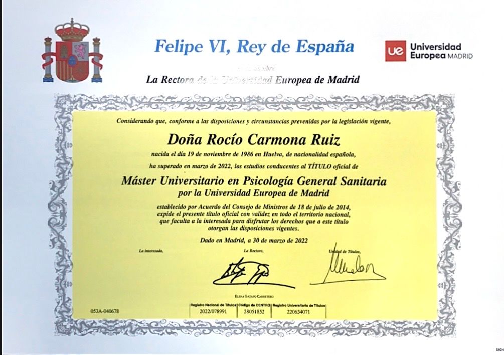 ¿Para cuándo podría visitarme con Rocio Carmona Ruiz?A veces Rocio Carmona Ruiz tiene algunas horas disponibles dentro de la misma semana o para la siguiente. Consulta su calendario: verás la primera hora que tiene disponible, ya que se actualiza en tiempo real. Si no te va bien esa primera hora, comprueba otros días. La reserva siempre es inmediata y gratuita.