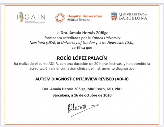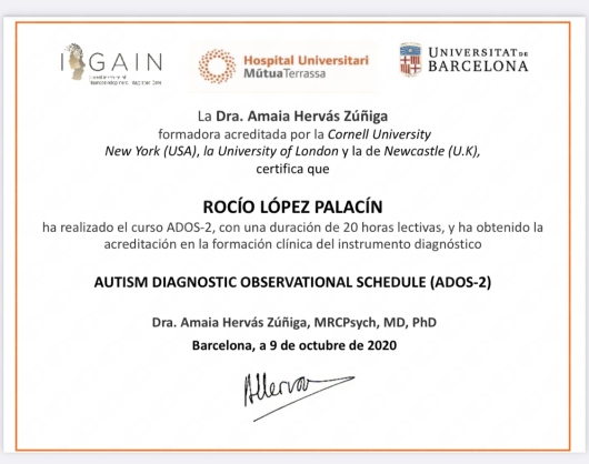 Tengo amplia formación y experiencia en Trastornos del Espectro Autista, y las correspondientes acreditaciones para la evaluación y diagnóstico de estos trastornos.