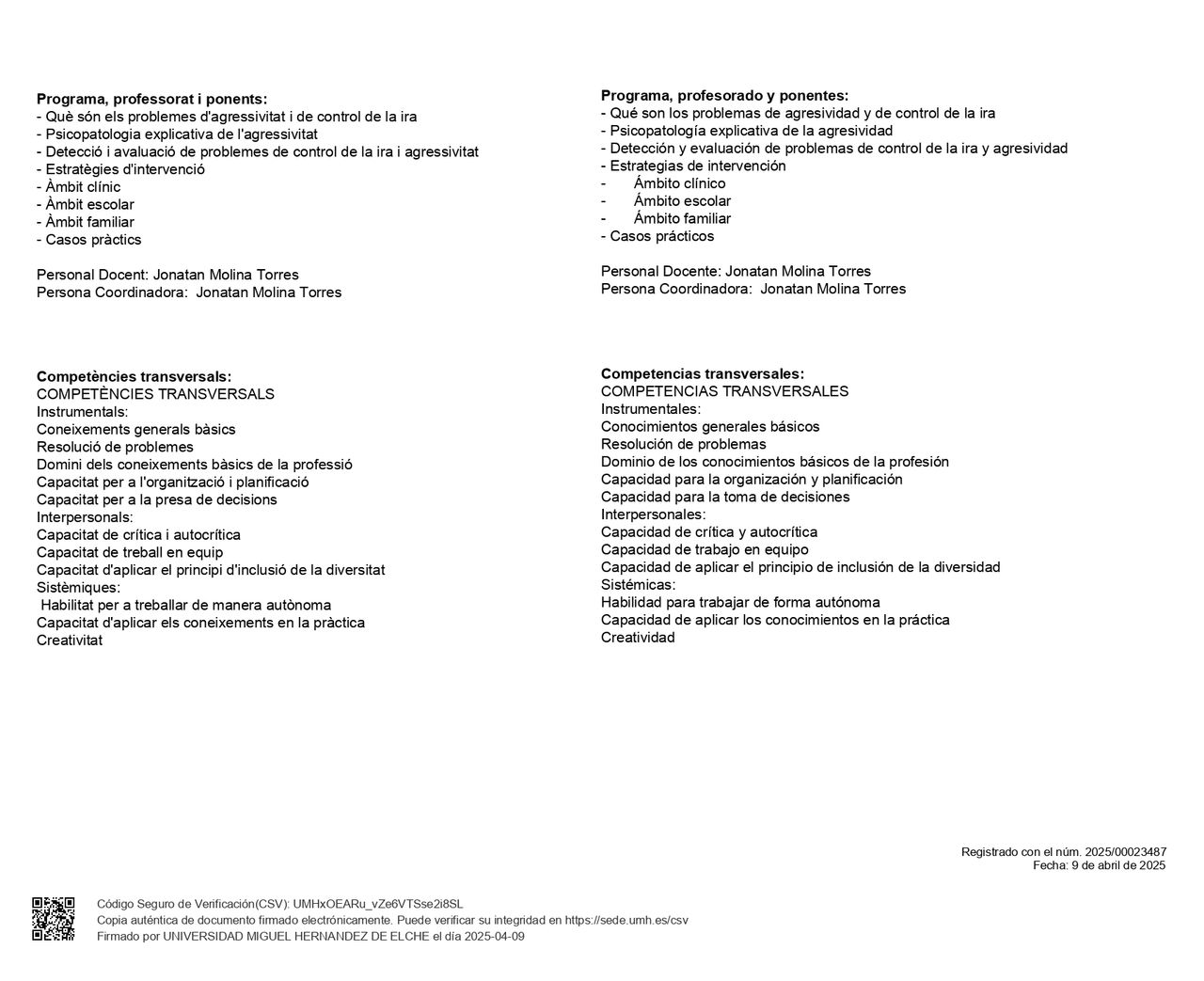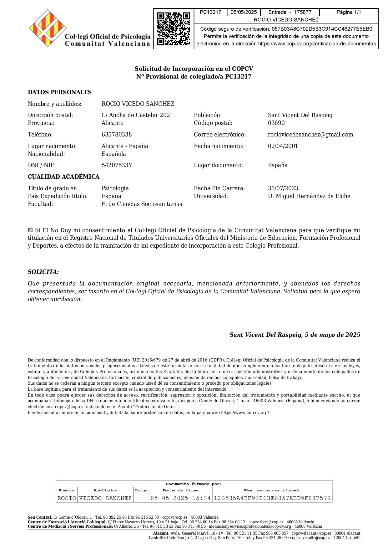 Núm. Colegiado: CV19650
