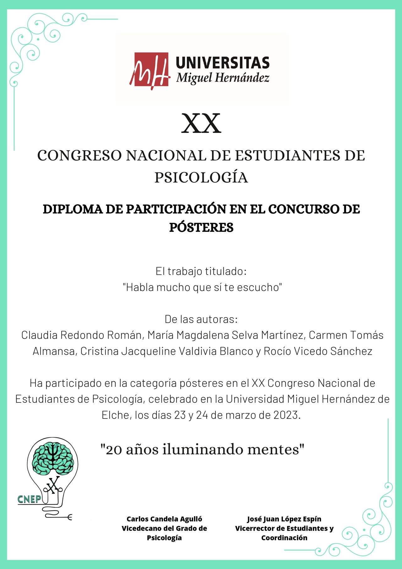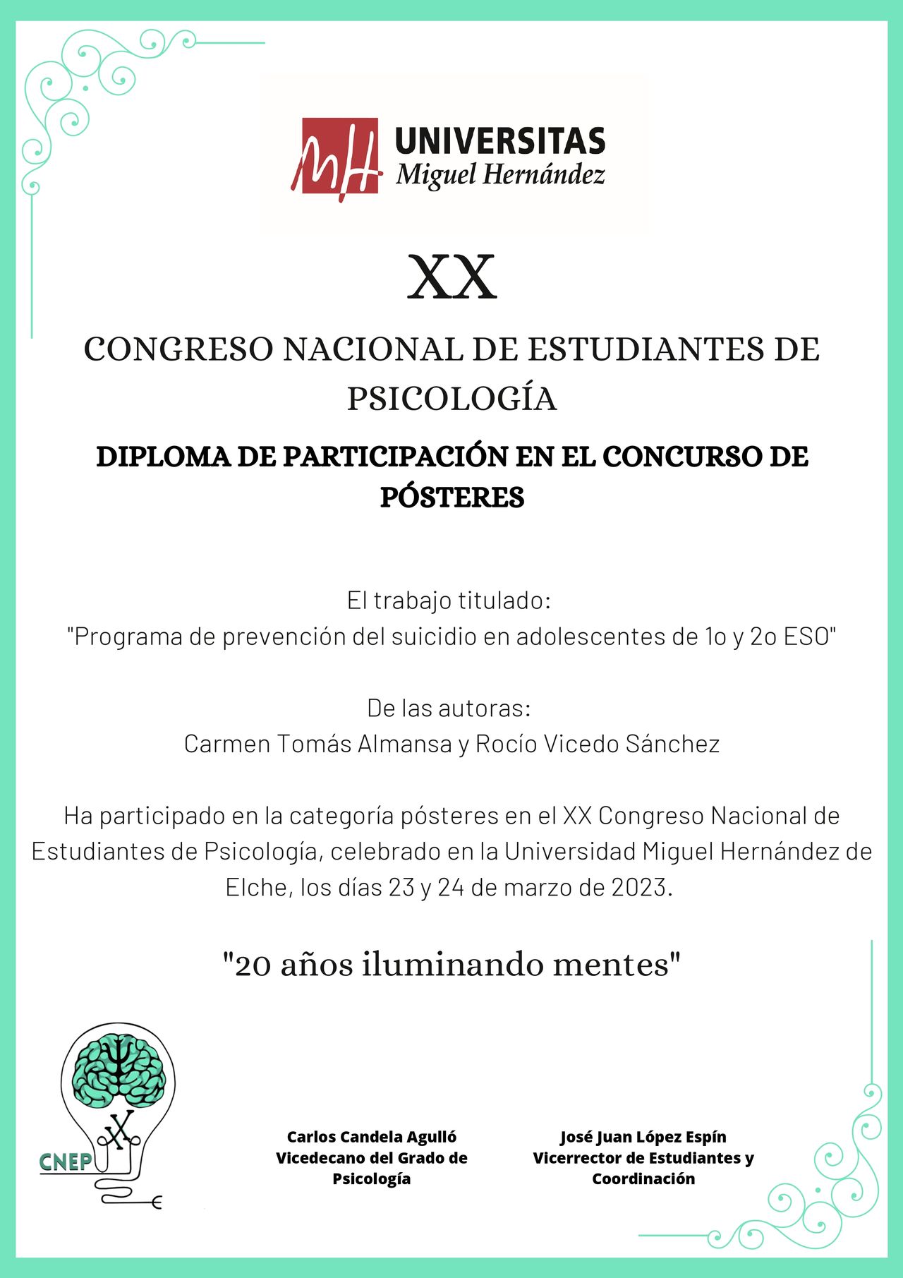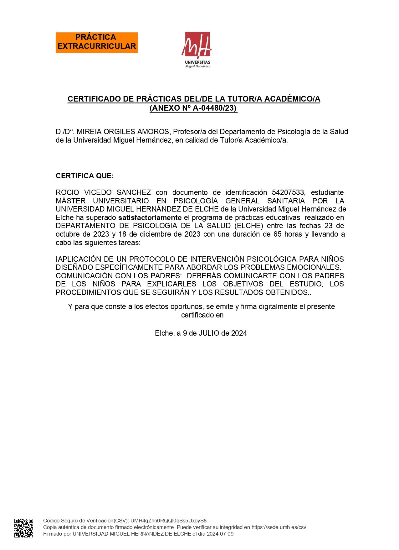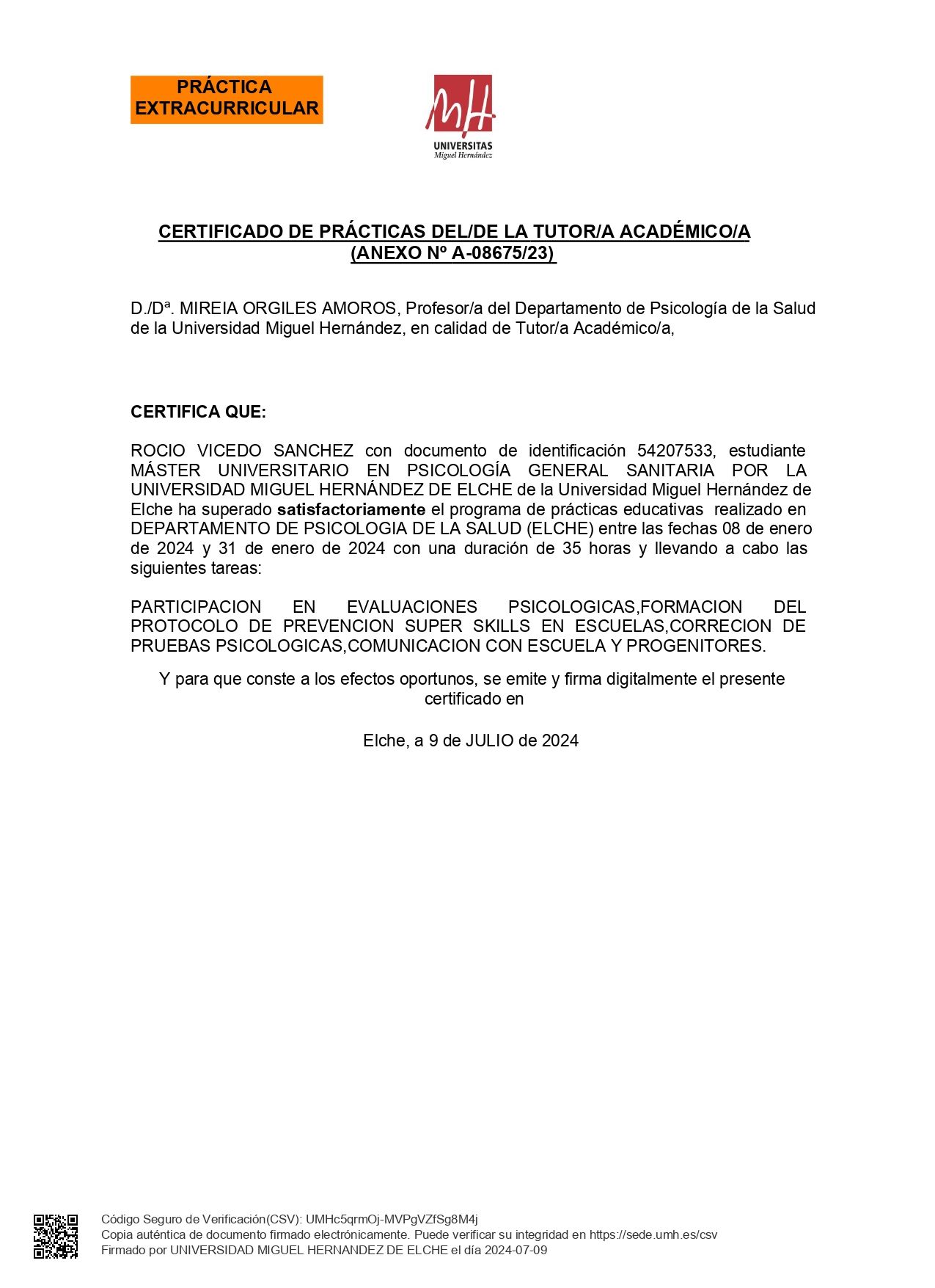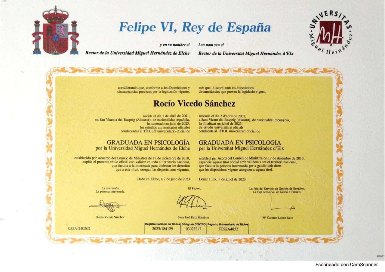 Tras finalizar el grado en el año 2022, cursé el Máster en Psicología General Sanitaria, que concluí en 2024.