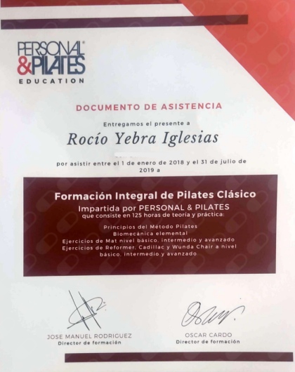 Llevo tres años en fisiopilates con Rocío y me ha ayudado muchísimo posturalmente.He ganado flexibilidad y noto una disminución importante de mis molestias en espalda y cuello. Rocio es una persona encantadora y muy profesional y no dudaría en recomendar sus clases a cualquiera.