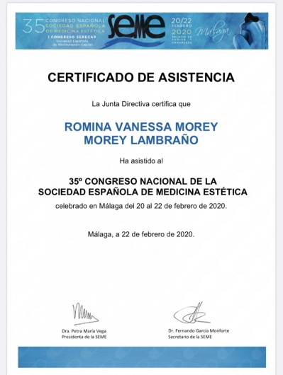 ¿Cuáles son las principales especialidades de Romina Vanessa Morey Lambraño?Romina Vanessa Morey Lambraño es médico estético. Te mostramos algunos de los servicios que ofrece gracias a su trayectoria y amplia experiencia: Aumento de labios, Aplicación de Neurotoxina en arrugas de expresión (frente, entrecejo y patas de gallo), Primera visita de Medicina Estética, Mesoterapia facial, Peeling, Tratamiento para hipotrofia de labios (labios finos), Tratamiento con hilos tensores, Mesoterapia, Rellenos faciales, Tratamientos con Neurotoxina.
