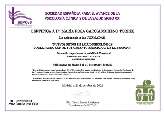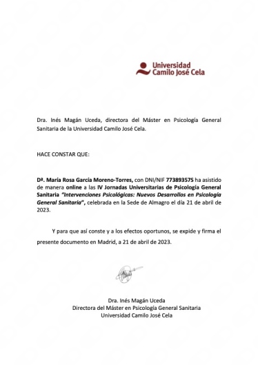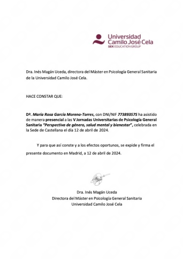 A lo largo de mi trayectoria me he especializado en psicología perinatal, un ámbito que me apasiona por la relevancia que tiene en la salud mental de las mujeres y las familias. Para ello, he completado el Máster en Salud Mental Perinatal en la UNED, así como el Máster en Terapias de Tercera Generación en la UNIR, que me ha permitido integrar enfoques basados en la evidencia como la terapia de aceptación y compromiso, la terapia centrada en la compasión y el mindfulness.