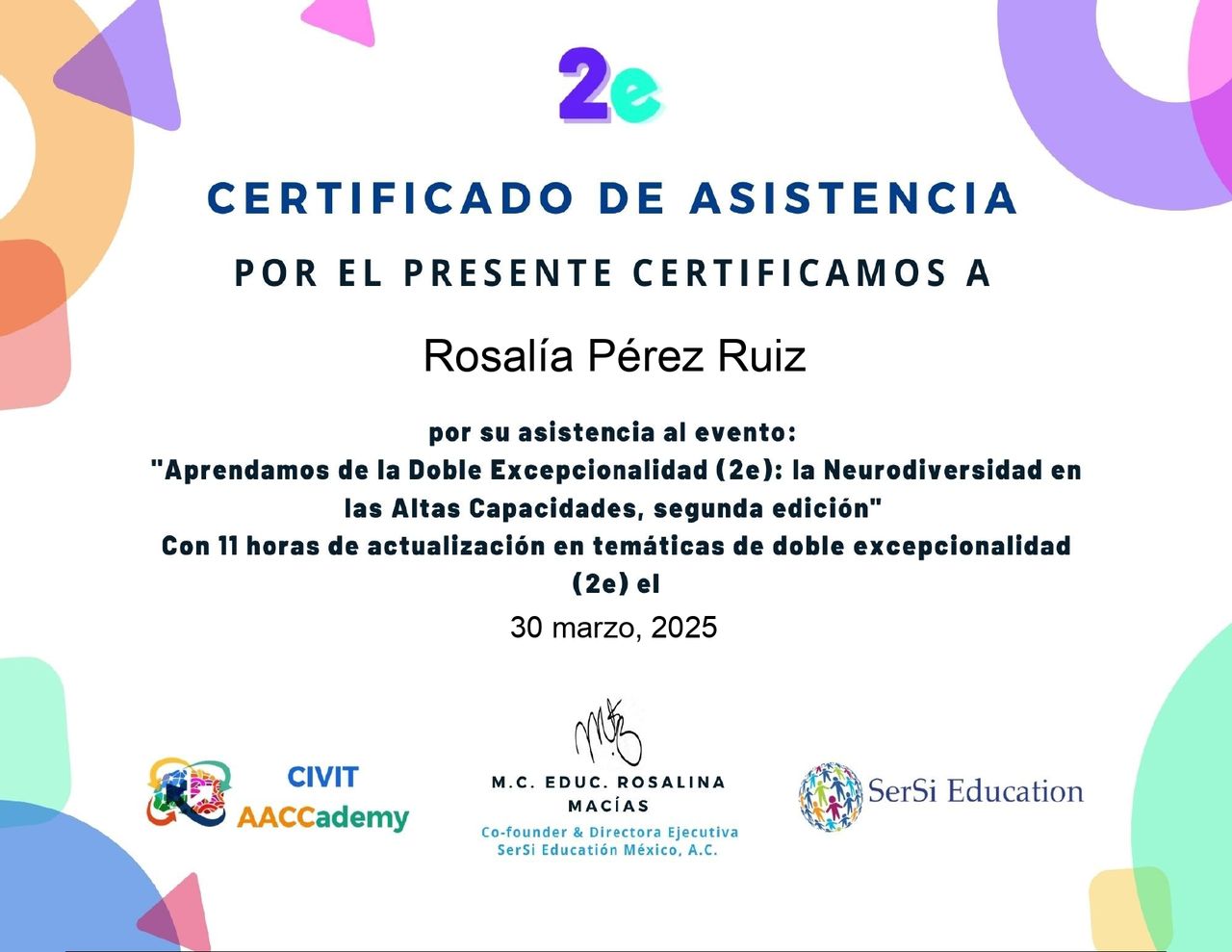Solo tengo palabras de agradecimiento a Rosalia por su manera de escucharme, comprenderme y saber guiarme.