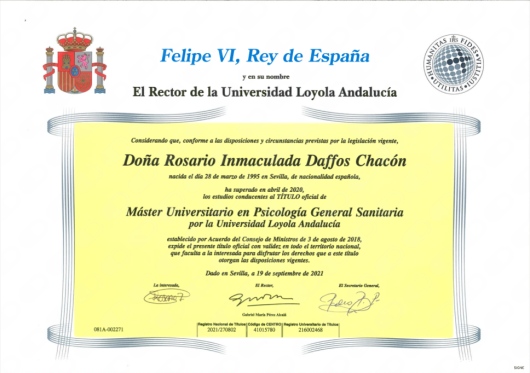 ¿Cuáles son las principales especialidades de Rosario Daffos Chacón?Rosario Daffos Chacón es psicóloga. Te mostramos algunos de los servicios que ofrece gracias a su trayectoria y amplia experiencia: Consulta online, Visita Psicología, Primera visita Psicología, Tratamiento para adicciones.