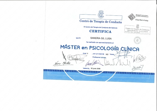¿Cuáles son las principales especialidades de Sandra Gil Lusa?Sandra Gil Lusa es psicóloga. Te mostramos algunos de los servicios que ofrece gracias a su trayectoria y amplia experiencia: Terapia de pareja, Psicoterapia, Acompañamiento en el proceso profesional, Acompañamiento psicológico en el proceso personal, Asistencia psicológica a mujeres víctimas de violencia de género, Diagnóstico y tratamiento de los trastornos bipolares, Diagnóstico y tratamiento de los trastornos depresivos, Diagnóstico y tratamiento del trastorno obsesivo compulsivo (TOC), Diagnóstico y tratamiento para trastornos de ansiedad, Estrategias terapéuticas en comunicación y habilidades sociales.