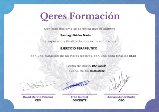 ¿Cuáles son las principales especialidades de Santiago Ibáñez Marín?Santiago Ibáñez Marín es fisioterapeuta. Te mostramos algunos de los servicios que ofrece gracias a su trayectoria y amplia experiencia: Visita Fisioterapia.