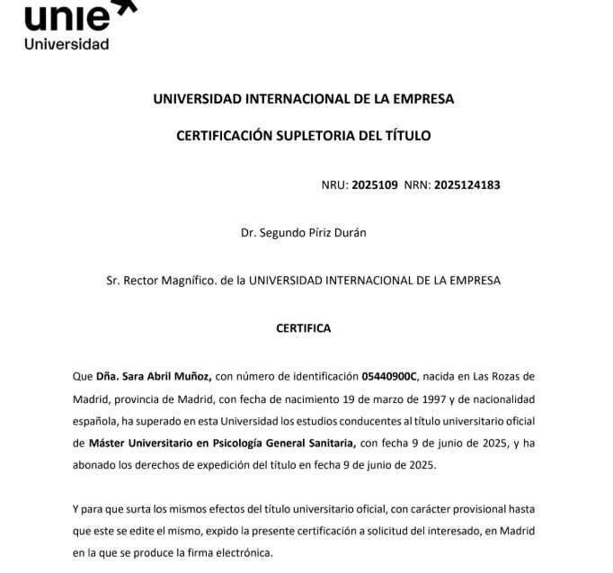 Psicóloga Sanitaria y Jurídica, especializada en terapia de pareja y familia desde un enfoque sistémico e integrativo. Cuento con doble formación oficial en Psicología General Sanitaria y Psicología Jurídica y Forense, así como experiencia clínica en diferentes etapas del ciclo vital: atención temprana, intervención individual con adultos, intervención familiar y acompañamiento en contextos de alta vulnerabilidad.