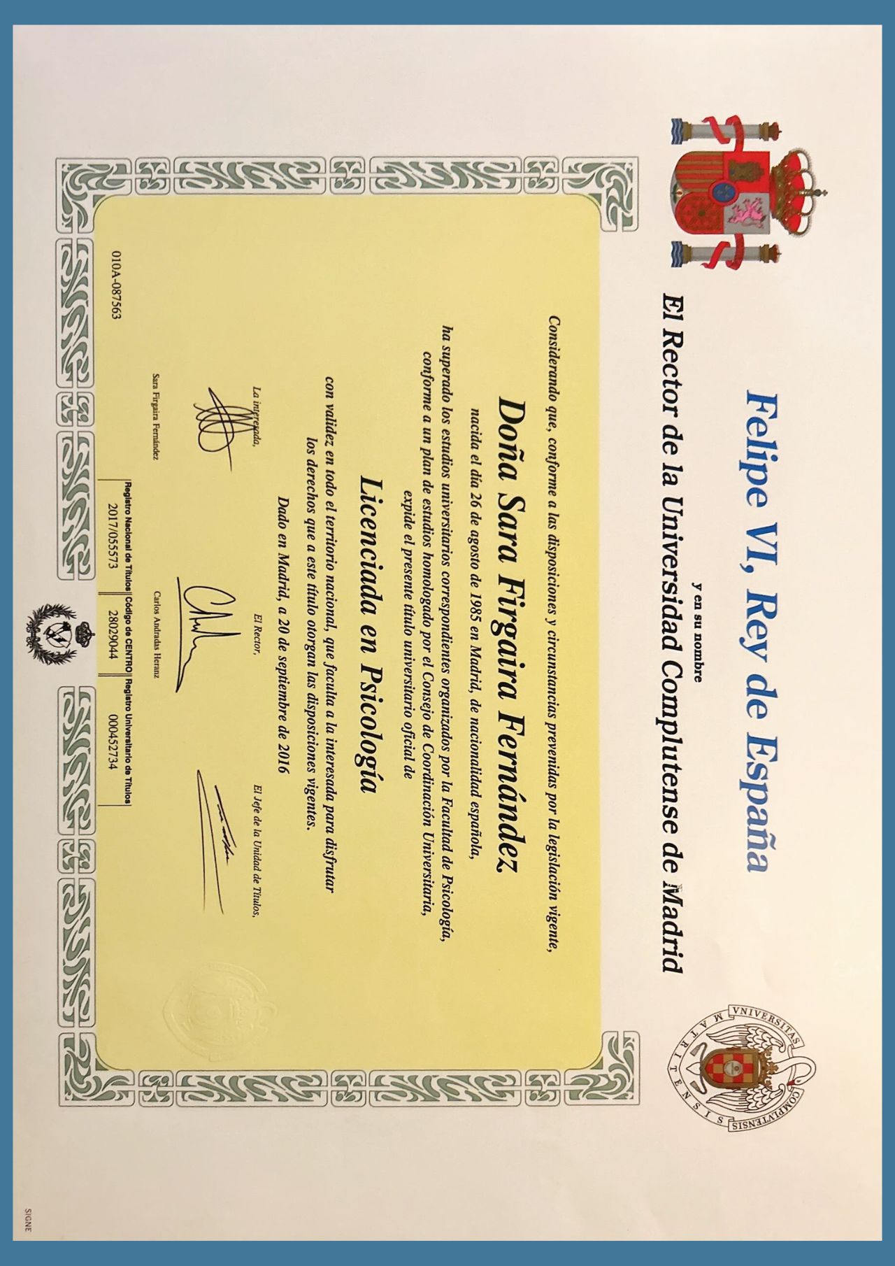Me licencié en Psicología por la Universidad Complutense de Madrid, pero mi aprendizaje no se ha detenido ahí. He dedicado mi carrera a la intervención clínica, formándome continuamente en áreas como el trauma, el apego y los trastornos de la conducta alimentaria (TCA). Cuento con el Máster en Psicología General Sanitaria, un Máster en Psicología Integradora y un Máster en Intervención y Reparación en Trauma y Apego, lo que me permite adaptar cada intervención a las necesidades individuales de mis pacientes.