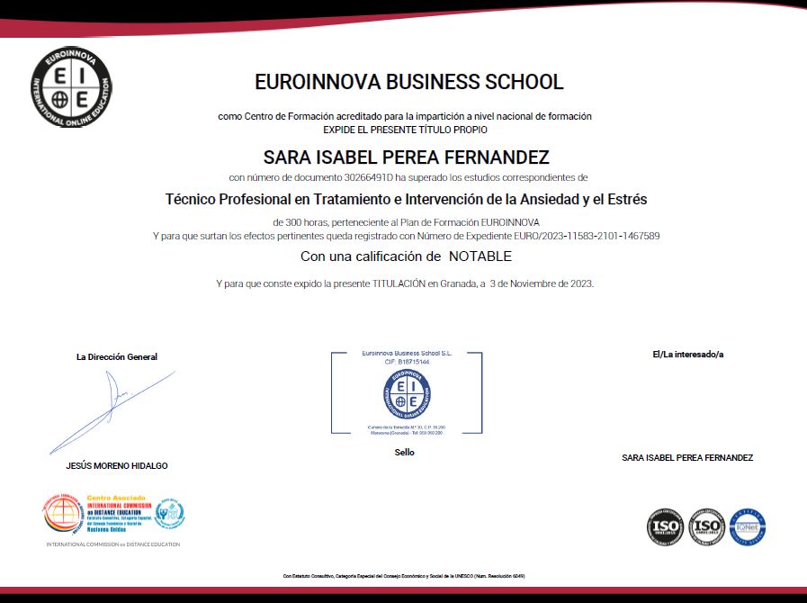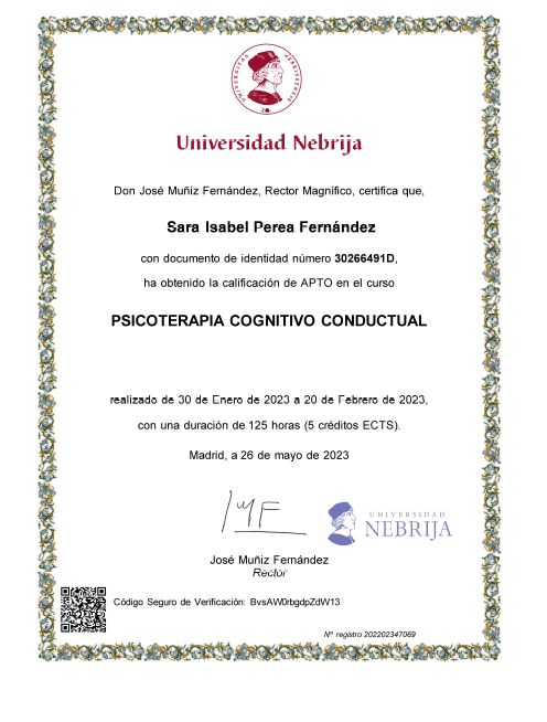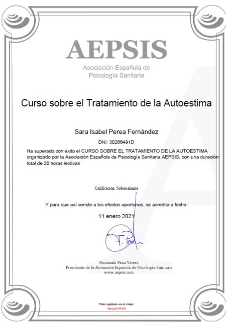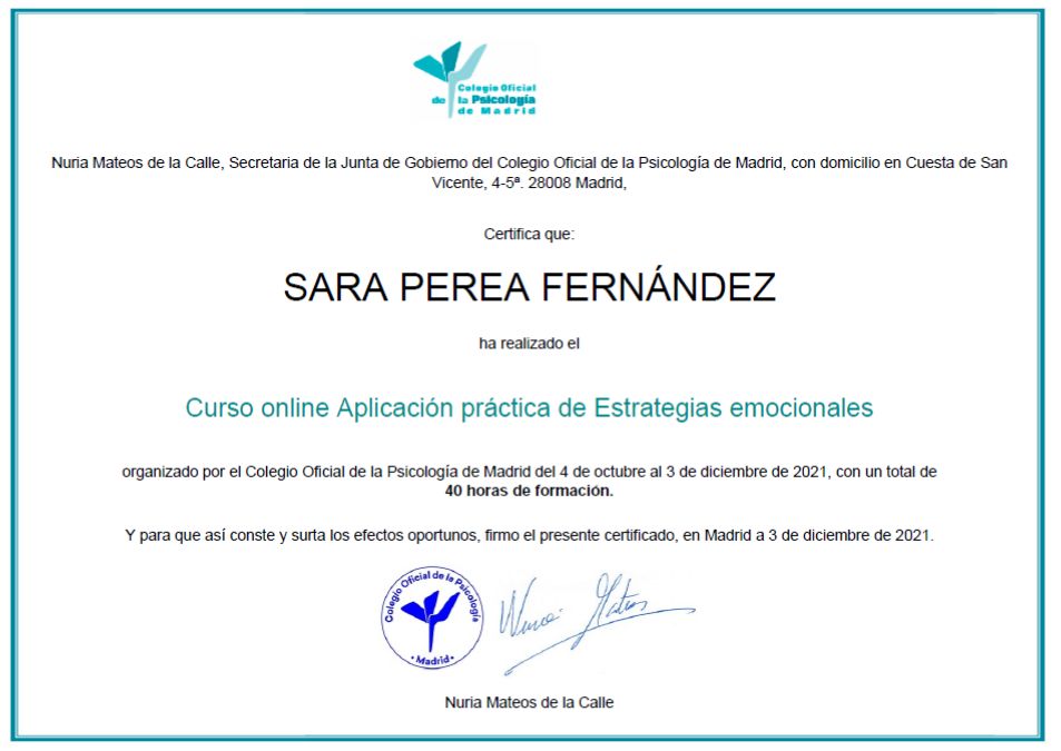 • Consulta Privada Sara Isabel Perea Fernández • Primera visita Psicología •