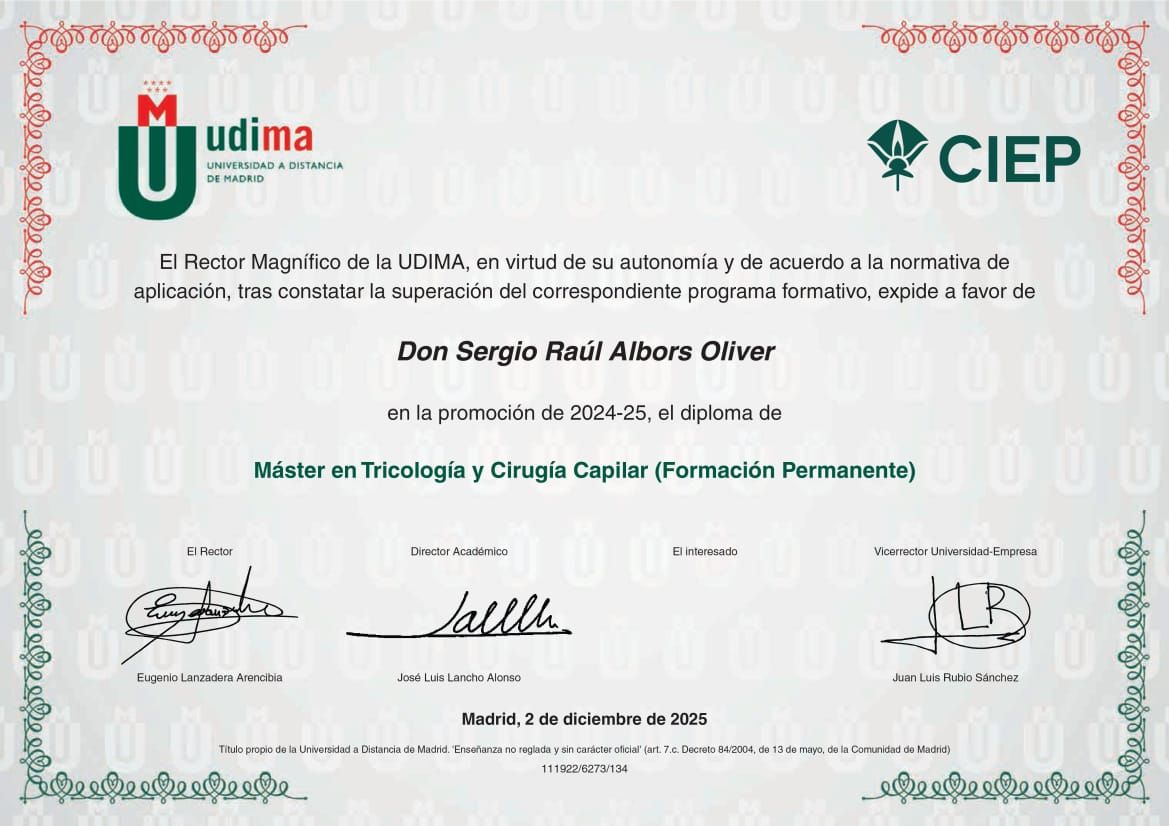 Soy el Dr. Sergio Albors Oliver, médico especializado en tricología y cirugía de restauración capilar.