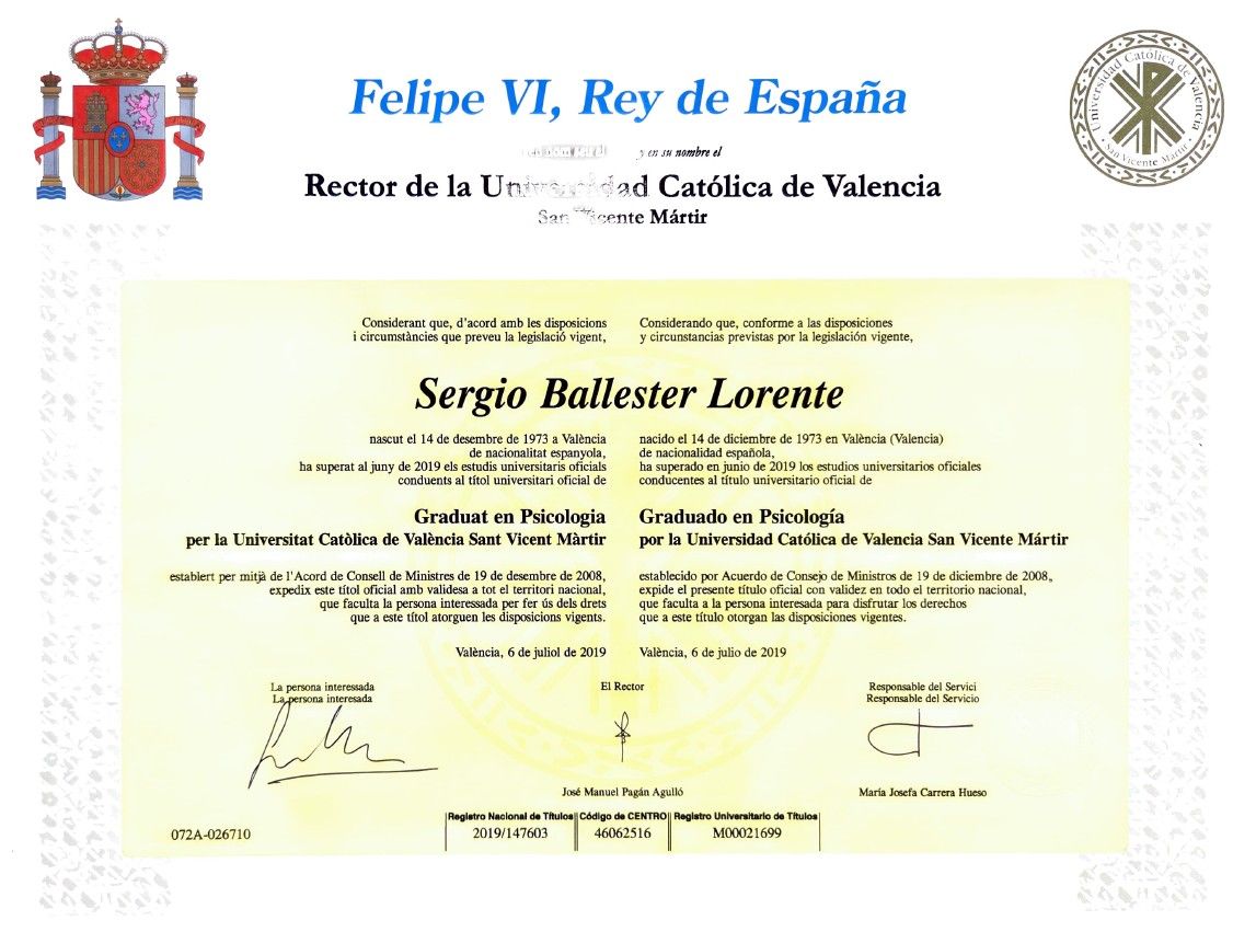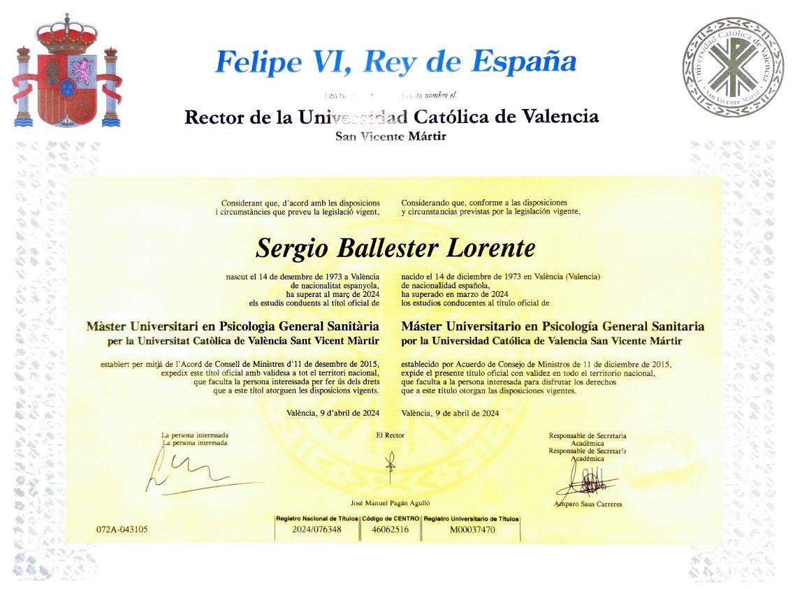 Así pues decidí estudiar psicoanálisis, que ahora es mi orientación principal, y me gradué en Psicología. Me colegié y obtuve el Máster de Psicólogo General Sanitario el cuál me habilita para ejercer como Psicólogo Clínico a nivel nacional, y también me he especializado en EMDR y terapia breve estratégica.