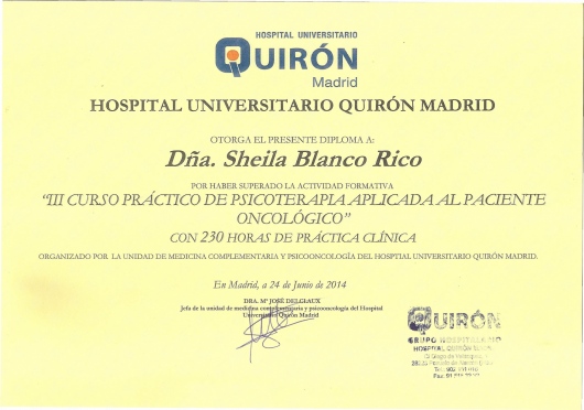¿Para cuándo podría visitarme con Sheila Blanco Rico?Ahora mismo Sheila Blanco Rico no tiene horas disponibles, ya que su agenda está llena para las próximas semanas. Te recomendamos contactarte con Sheila Blanco Rico por si se libera algún espacio o si deseas pedir una cita para más adelante.