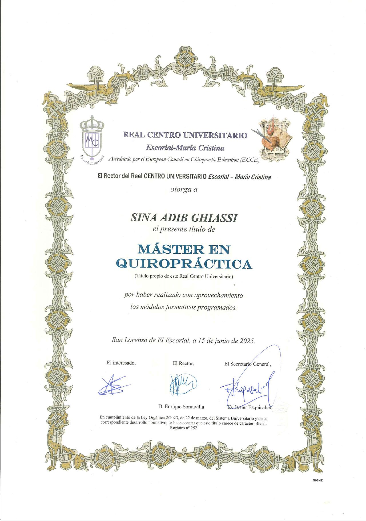 ¿Cuáles son las principales especialidades de Sina Adib Ghiassi?Sina Adib Ghiassi es quiropráctico.
