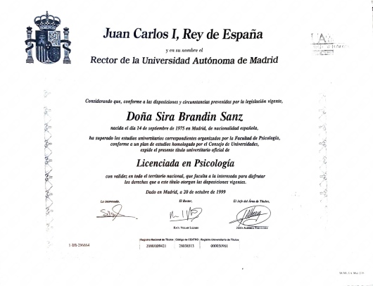 Máster en Psicología Legal y Forense por la Universidad Complutense de Madrid.