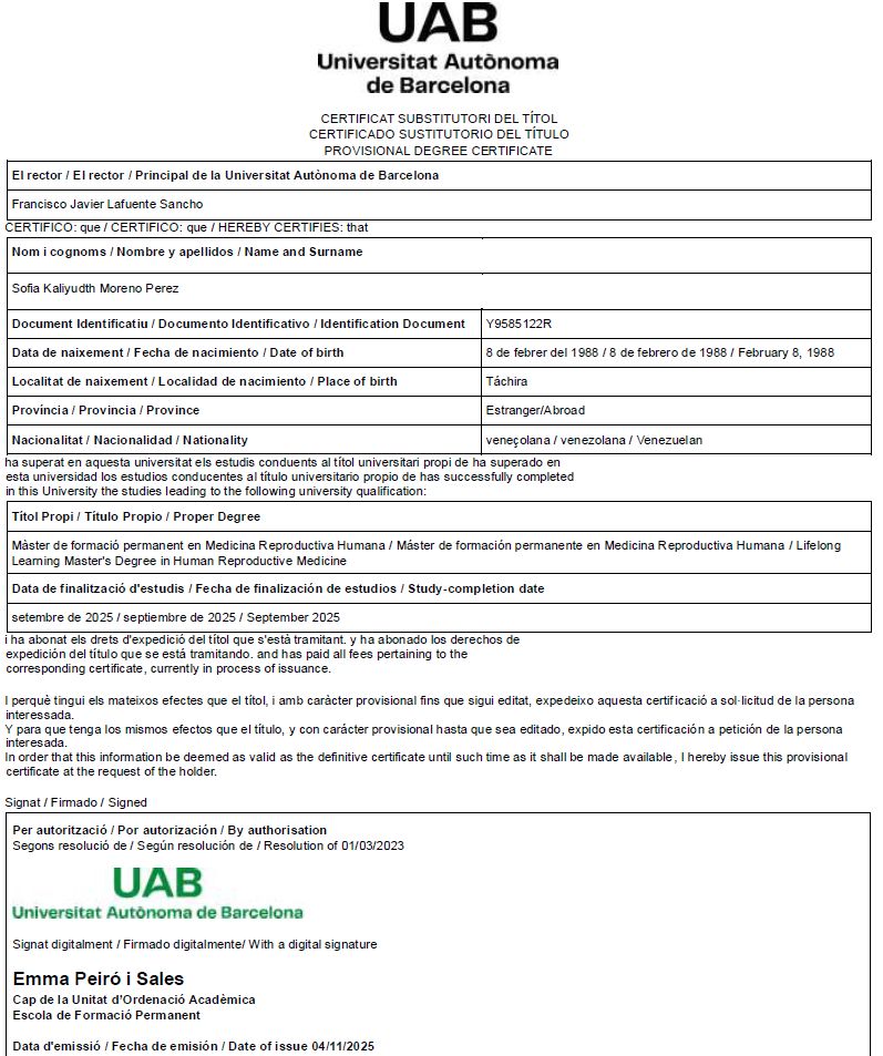Soy médica con una sólida formación internacional y una visión integral de la salud de la mujer. Soy especialista en Obstetricia y Ginecología (Universidad de Los Andes, 2018) y cuento con un Máster en Reproducción Humana por la UAB, que me ha permitido profundizar en los aspectos clínicos y científicos relacionados con la fertilidad y el tratamiento de la reproducción.
