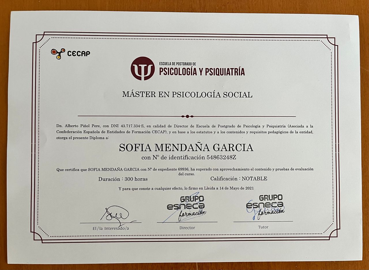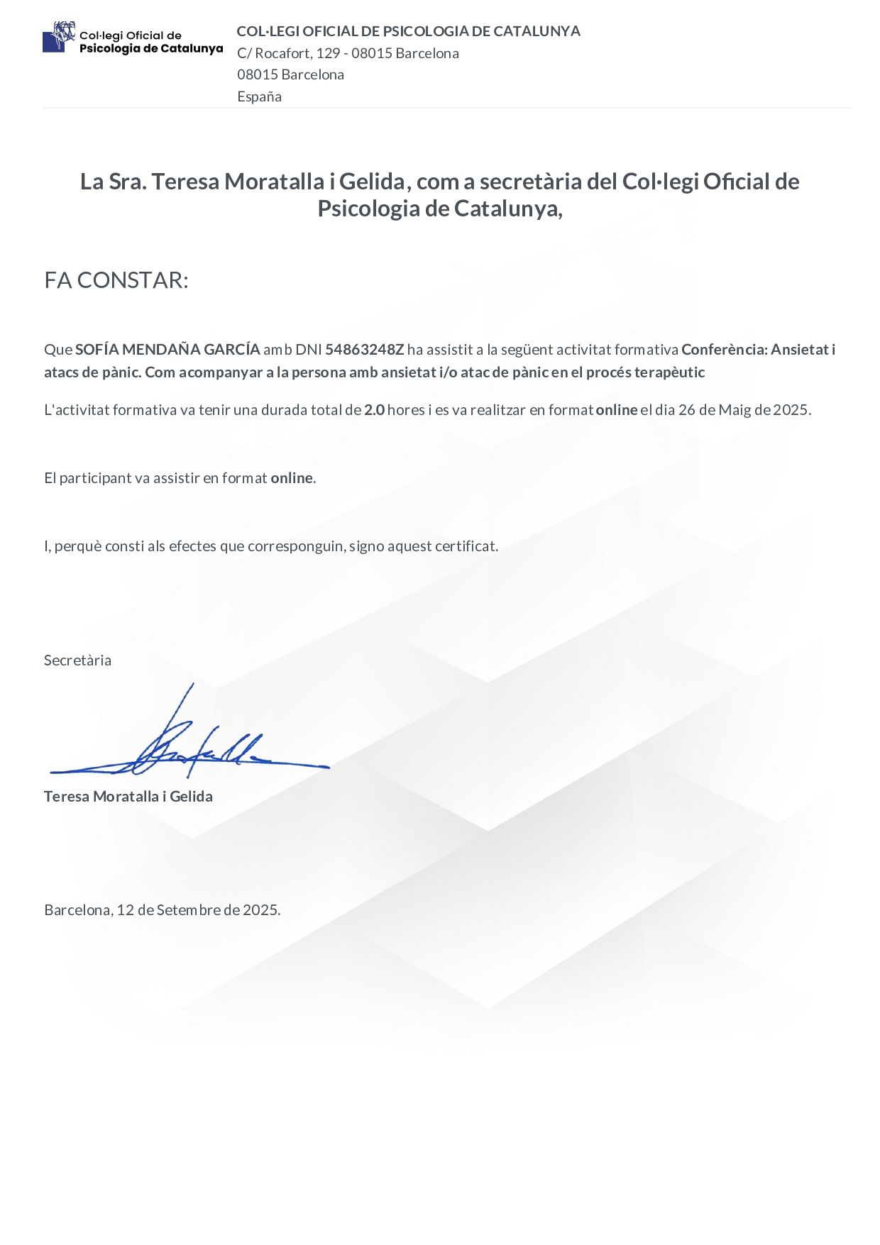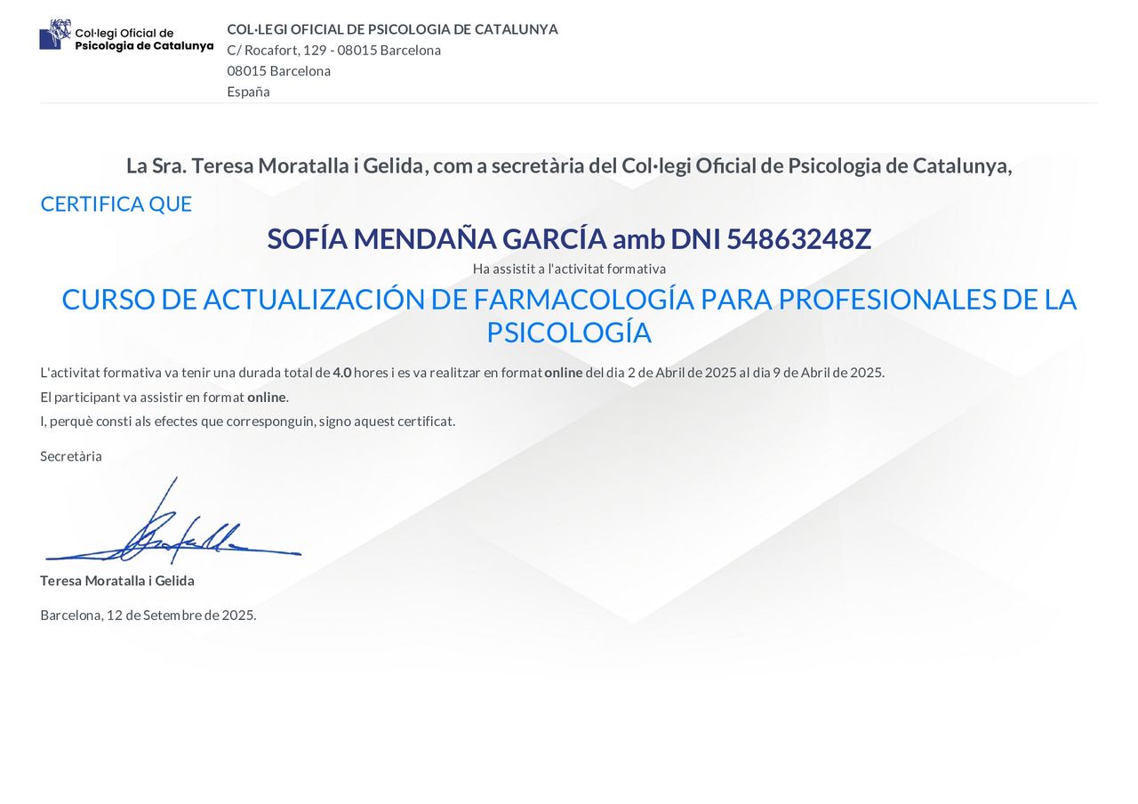 Sofia es una profesional super atenta y dedicada. Me han ayudado mucho las herramientas que me da. Gracias nos vemos en unos dias!
