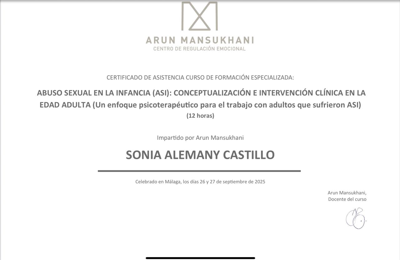 Soy Sonia Alemany Castillo, Psicóloga General Sanitaria, y mi objetivo es ofrecerte un espacio seguro, cálido y sin juicios. ¡Bienvenid@ al cambio!