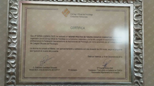 Estoy especializada en Terapia Cognitivo Conductual habiendo cursado el Máster correspondiente en el COPCV (Colegio Oficial de Psicólogos), una especialidad dirigida tanto a NIÑ@S, ADOLESCENTES, ADULTOS Y PAREJAS, con el principal objetivo de alcanzar el Bienestar Emocional de todas las personas. Respecto a mi FORMA DE TRABAJAR, desde el compromiso y dedicación a mi profesión, está basada en la aplicación de las técnicas según la TERAPIA COGNITIVO CONDUCTUAL la cual abarca el término Conducta en un sentido más amplio tanto en base conductas visibles, como pensamientos, sentimientos y emociones. El enfoque Cognitivo Conductual estudia nuestros aprendizajes, nuestros comportamientos, los cuáles dependen de la constitución genética y, fundamentalmente, de las experiencias de vida particulares e intransferibles de cada persona. Algunos de estos aprendizajes nos ayudan a sentirnos bien, a relacionarnos adecuadamente con los demás y a lograr lo que nos proponemos, pero otros, en cambio, nos generan dolor, resentimiento, dañan nuestra salud y nuestras relaciones interpersonales. A estos últimos estará dirigida la terapia desde mi firme compromiso, cercanía, lealtad y total confidencialidad. En consecuencia, desde mi Centro de Psicología os dejo una puerta abierta a tod@s, especialmente a todas aquellas personas que necesiten o simplemente quieran mejorar cualquier aspecto de su vida ya que, en definitiva, lo más importante en la vida es saber ser feliz con uno mismo para, así, poder hacer felices a los demás.