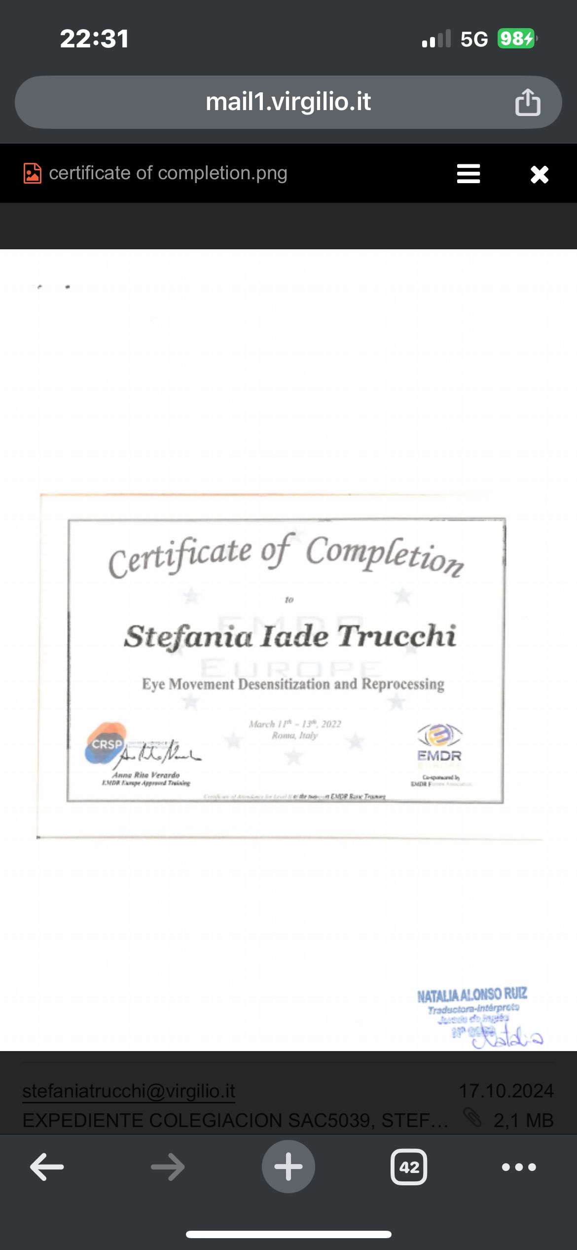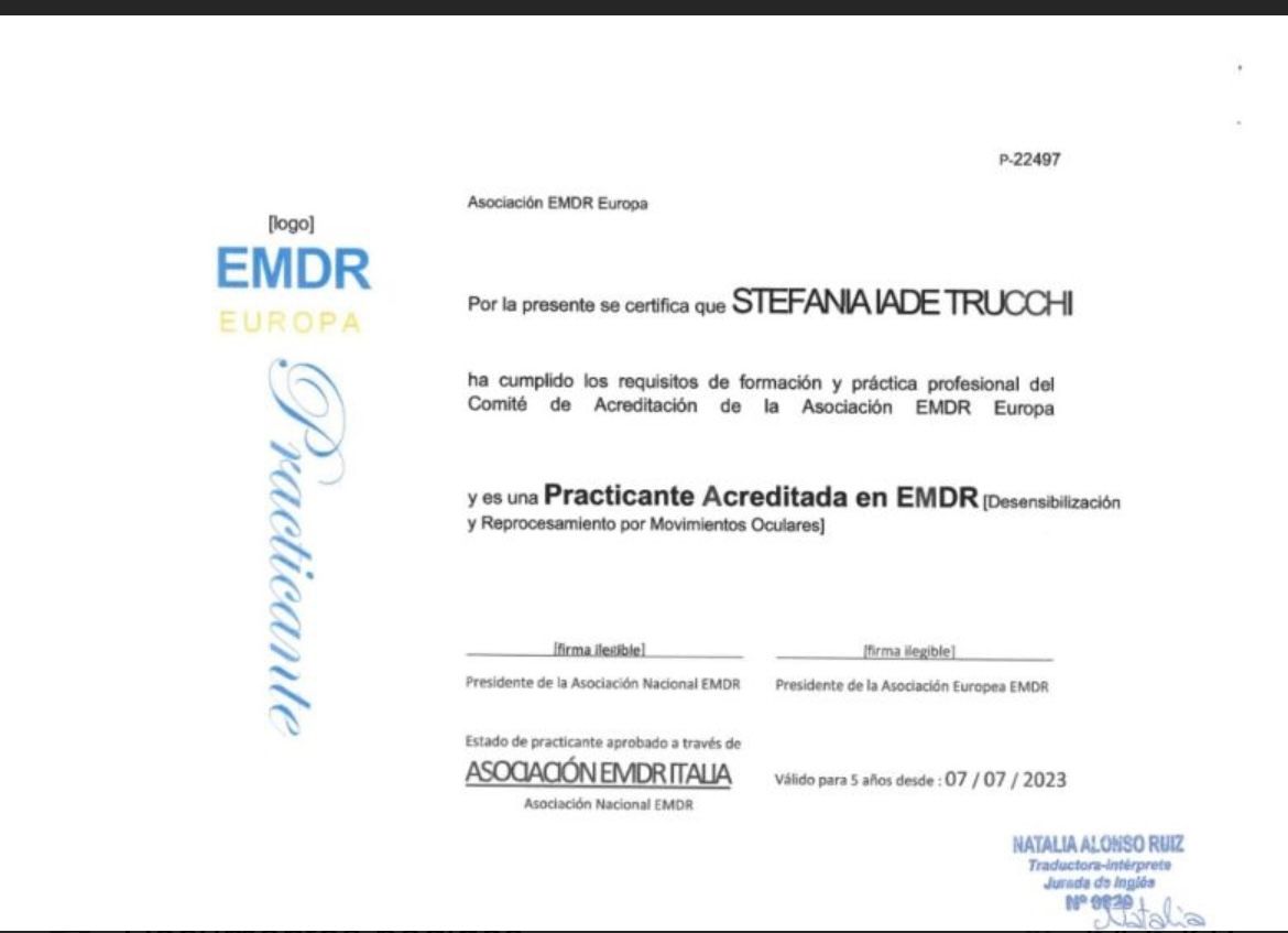 Soy Psicóloga - Psicoterapeuta, Terapeuta EMDR y ofrezco terapia online para italianos que viven en España.Soy especializada en el tratamiento del trastorno de estrés postraumático y del trastorno por trauma complejo.