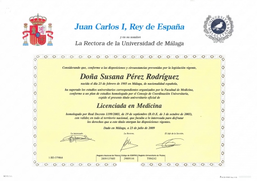 En 2012 obtiene su título Doctorado en 'Oncopatología' por la Universidad de Málaga. En la actualidad, se encuentra realizando su proyecto de tesis sobre la persistencia del 'Virus del Papiloma Humano', así como el Máster de actualización en Obstetricia y Ginecología de la Sociedad Española de Ginecología y Obstetricia.