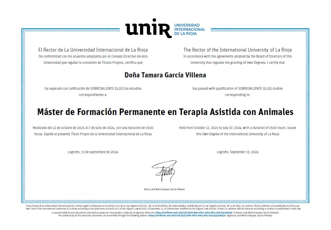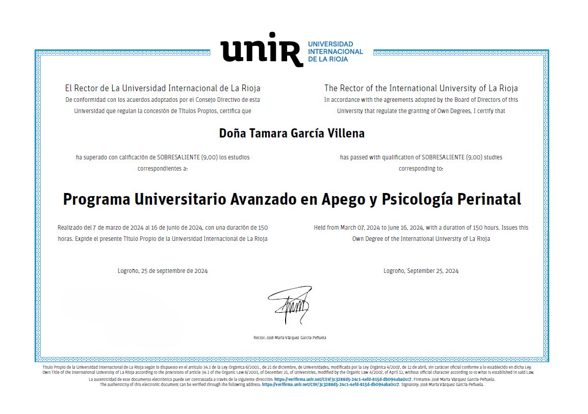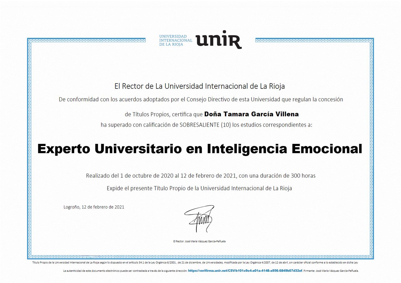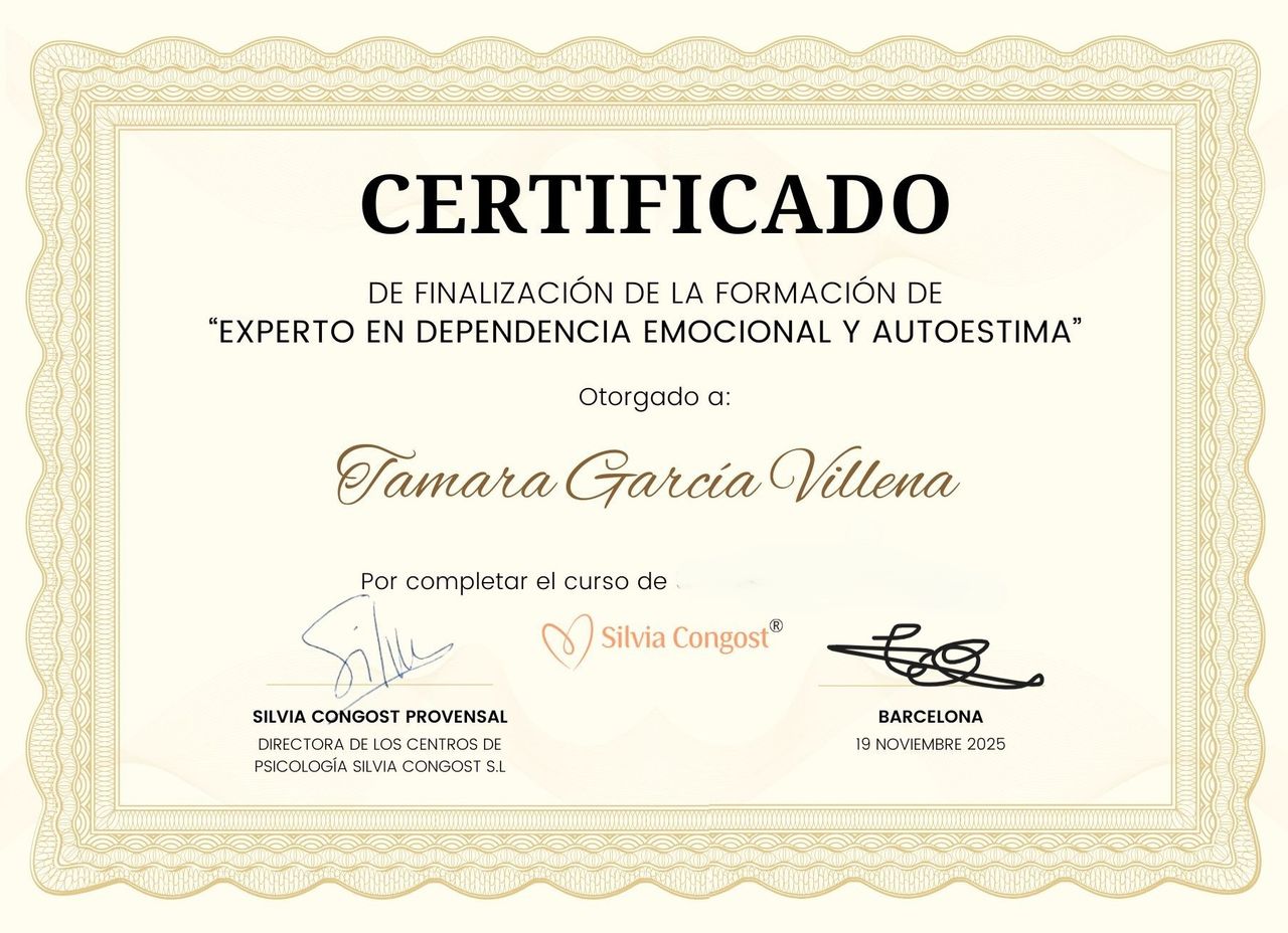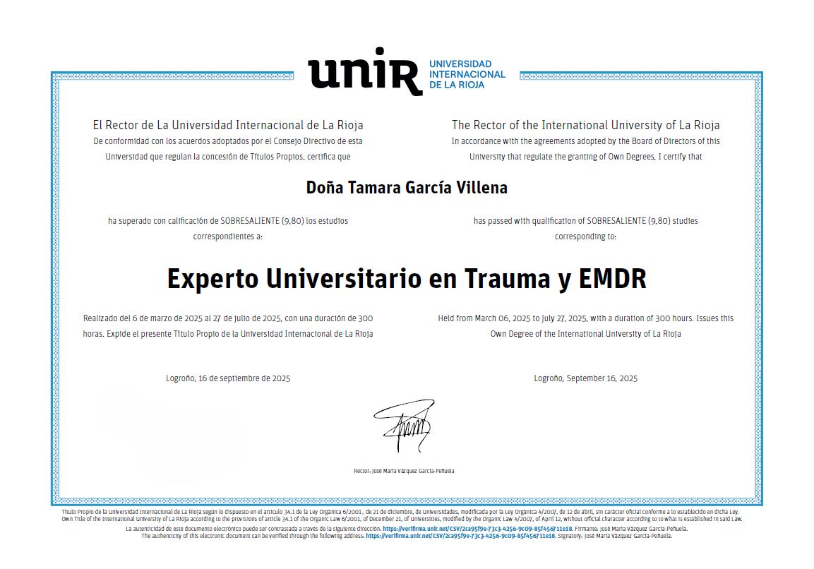 Exper. Dependencia Emocional - Autoestima - TraumaGrad. Por la Universidad Internacional de la RiojaPuntual, Empática, calidez en las sesiones