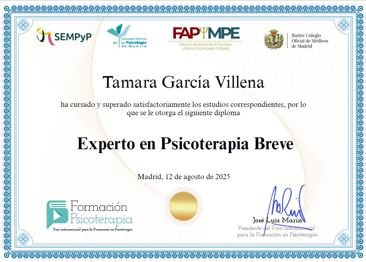 ¿Cuáles son las principales especialidades de Tamara García?Tamara García es psicóloga. Te mostramos algunos de los servicios que ofrece gracias a su trayectoria y amplia experiencia: Consulta online, Tratamiento en problemas de ansiedad y estrés (sesiones online), Primera visita online, Atención psicológica por videoconferencia, Primera visita (sesiones online), Tratamiento depresión (sesiones online), Terapia por Skype, Tratamiento para la depresión (teleconsulta online), Tratamiento en autoestima (sesiones online), Consulta psicológica online.
