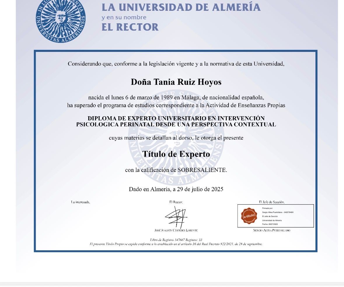 Mi objetivo es ofrecer un espacio seguro, cercano y libre de juicio, donde cada mujer pueda expresar sus emociones, miedos y necesidades, sintiéndose acompañada y comprendida en un momento vital como es la búsqueda de embarazo, el embarazo y la crianza.