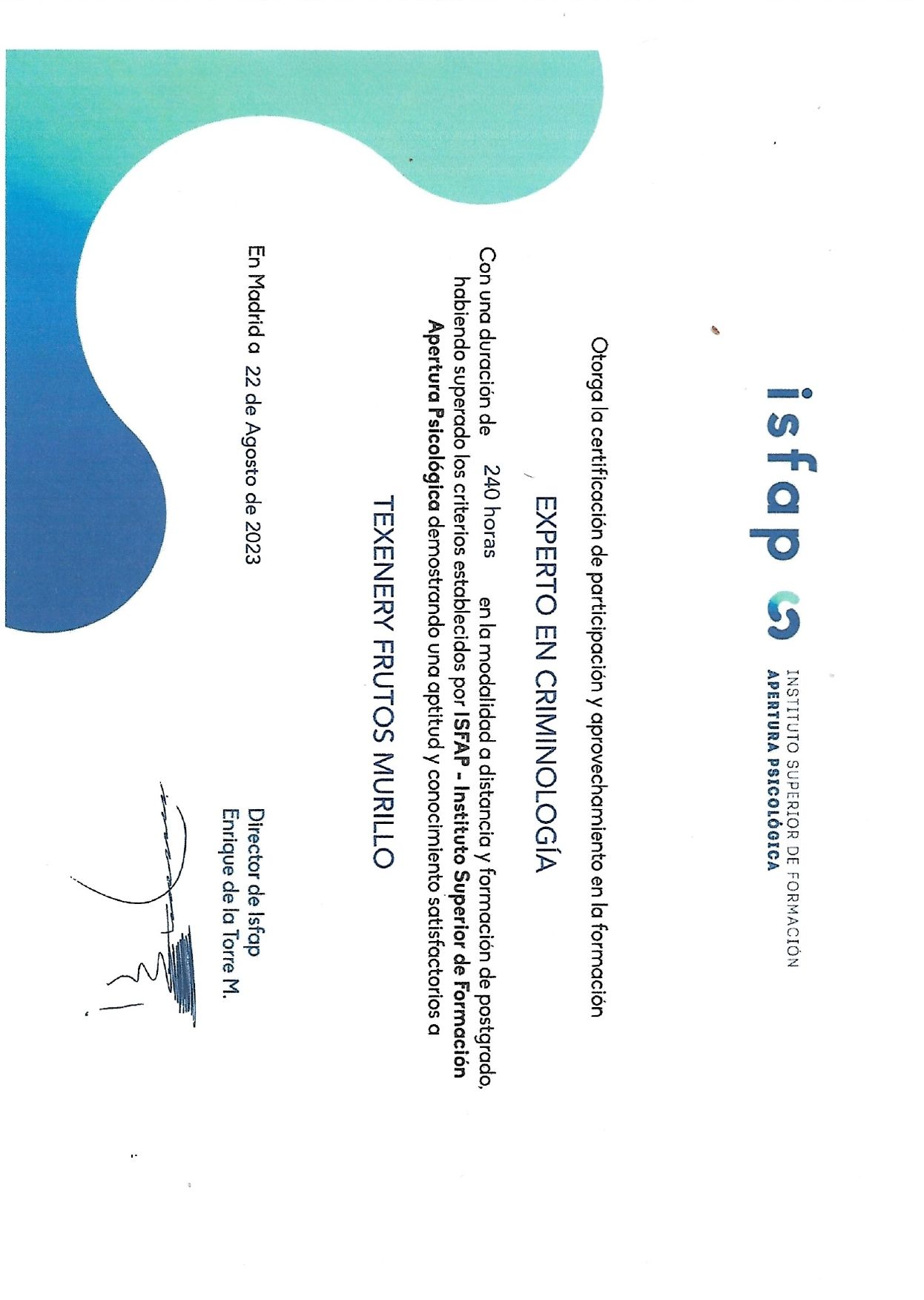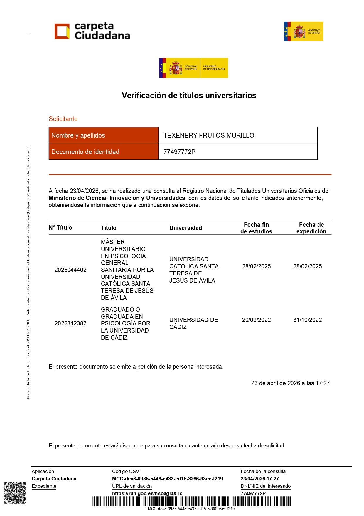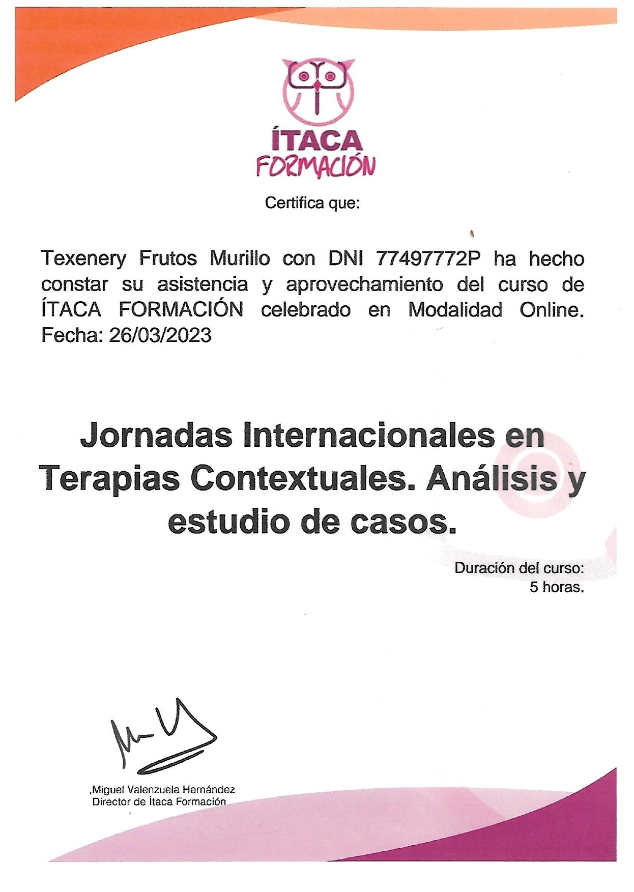 ¿Cuáles son las principales especialidades de Texenery Frutos?Texenery Frutos es psicóloga. Te mostramos algunos de los servicios que ofrece gracias a su trayectoria y amplia experiencia: Orientación a padres, Entrenamiento en gestión emocional, Gestión de la ansiedad, Diagnóstico y tratamiento para la depresión, Tratamiento de fobias, Tratamiento online de problemas de ansiedad, Consulta online terapia individual, Tratamiento depresión (sesiones online), Consulta online (visitas sucesivas), Terapia online.