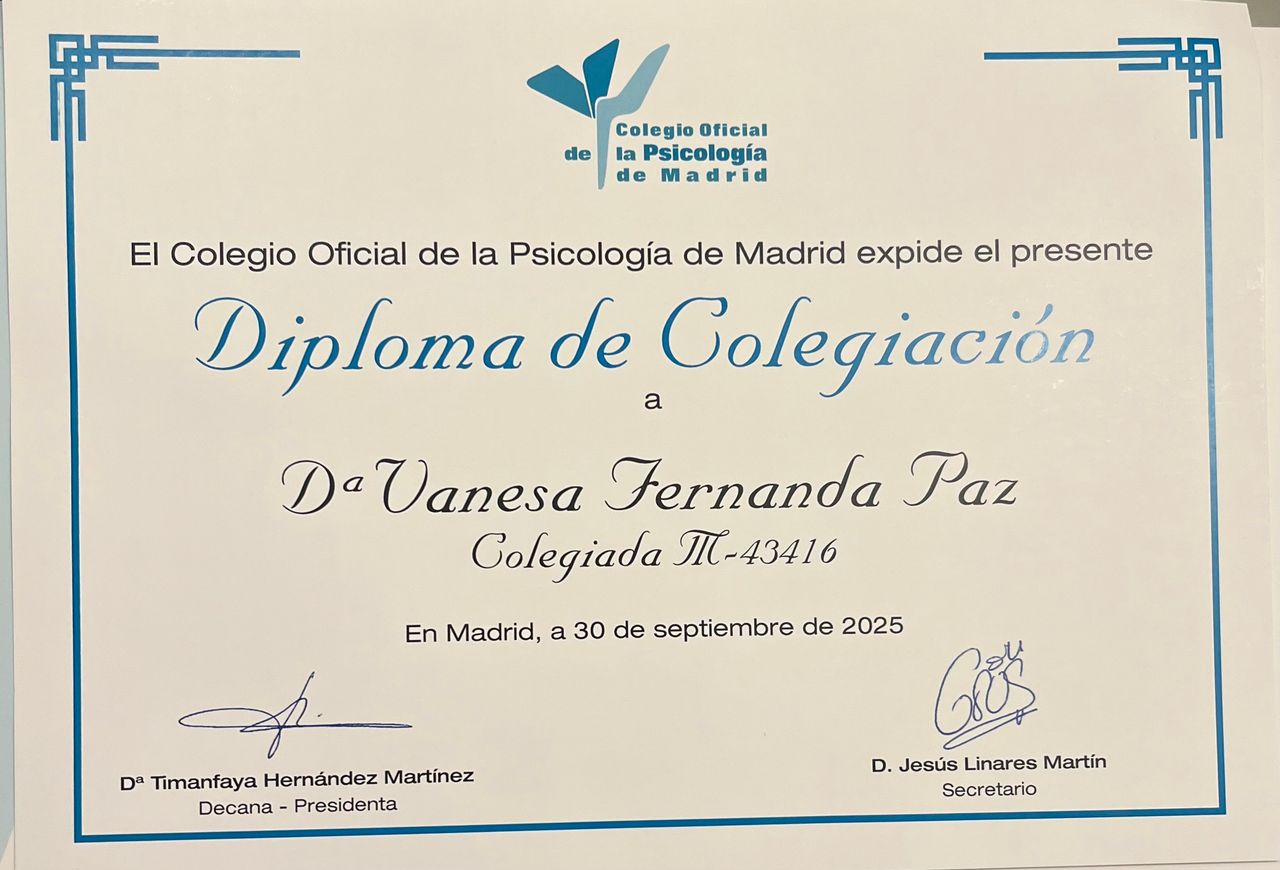 Hola! Soy Vanesa Paz, Psicóloga Sanitaria con 20 años de experiencia. He construido un recorrido profesional enriquecedor y complementario, pues también me titulé de docente en psicología, como profesora de yoga y técnica en mindfulness, me especialicé en promoción de derechos infanto-juveniles y en terapia de pareja. Esta diversidad de herramientas me permite trabajar desde un enfoque integrador, ajustando cada intervención a las necesidades únicas de cada persona.