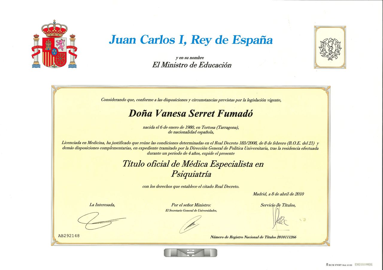 Especialista en Psiquiatría vía MIR (Institut Pere Mata).