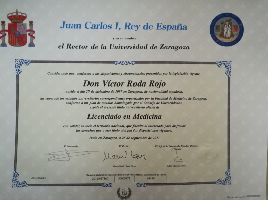 Licenciado en Medicina por la Facultad de Medicina de la Universidad de Zaragoza.