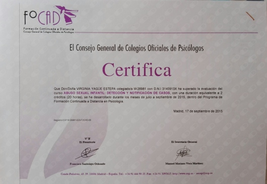 • Consulta de Psicología Virginia Yagüe • Primera visita Psicología •
