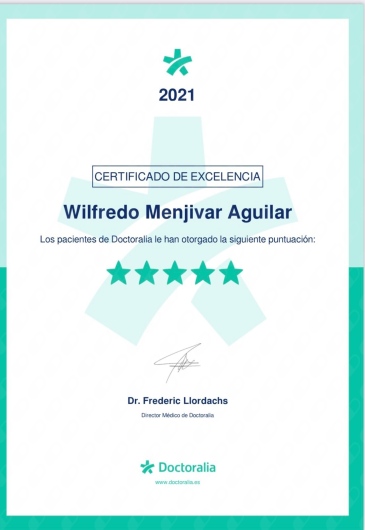 ¿Qué opinan los pacientes de Wilfredo Menjivar Aguilar?Un total de 232 pacientes han querido dejar una opinión sincera y real sobre Wilfredo Menjivar Aguilar, otorgándole además una valoración media de 5 estrellas (sobre un máximo de 5).