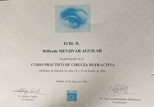 ¿Cuáles son las principales especialidades de Wilfredo Menjivar Aguilar?Wilfredo Menjivar Aguilar es oftalmólogo. Te mostramos algunos de los servicios que ofrece gracias a su trayectoria y amplia experiencia: Microcirugía de la miopía, Primera visita oftalmológica, Estudio Glaucoma, Primera visita de Retina, Visita de revisión, Primera visita de Estrabismo, Cirugía del estrabismo, Blefaroplastia, Extracción de cuerpo extraño corneal, Facoemulsificación de catarata con lente intraocular.