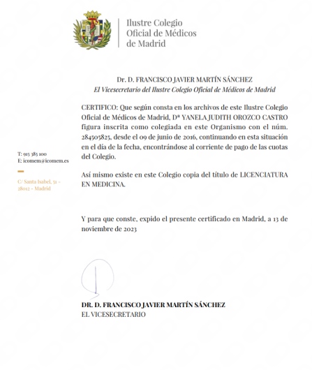¿Puedo hacer la visita con Yanela Orozco Castro de forma online, sin tener que desplazarme hasta su consulta?No, por el momento Yanela Orozco Castro no ofrece consulta online.