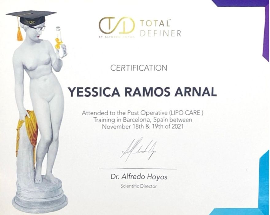 Soy Fisioterapeuta, me desempeño en el área de post operatorios de cirugías plásticas, como liposucciones, abdominoplastias, cirugías de mamas, faciales, entre otras. Estoy certificada en post operatorios de alta definición Total Definer del Dr. Alfredo Hoyos.