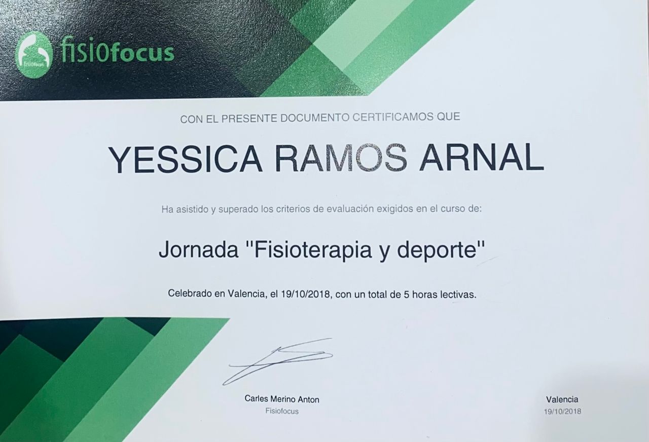 ¿Cuáles son las principales especialidades de Yessica Ramos Arnal?Yessica Ramos Arnal es fisioterapeuta. Te mostramos algunos de los servicios que ofrece gracias a su trayectoria y amplia experiencia: Visita Fisioterapia, Visita de tratamiento, Ejercicio terapéutico, Visita domiciliaria fisioterapia, Tratamiento del dolor de columna, Evaluación postural, Primera visita fisioterapia, Masaje terapéutico, Primera consulta, Tapping.