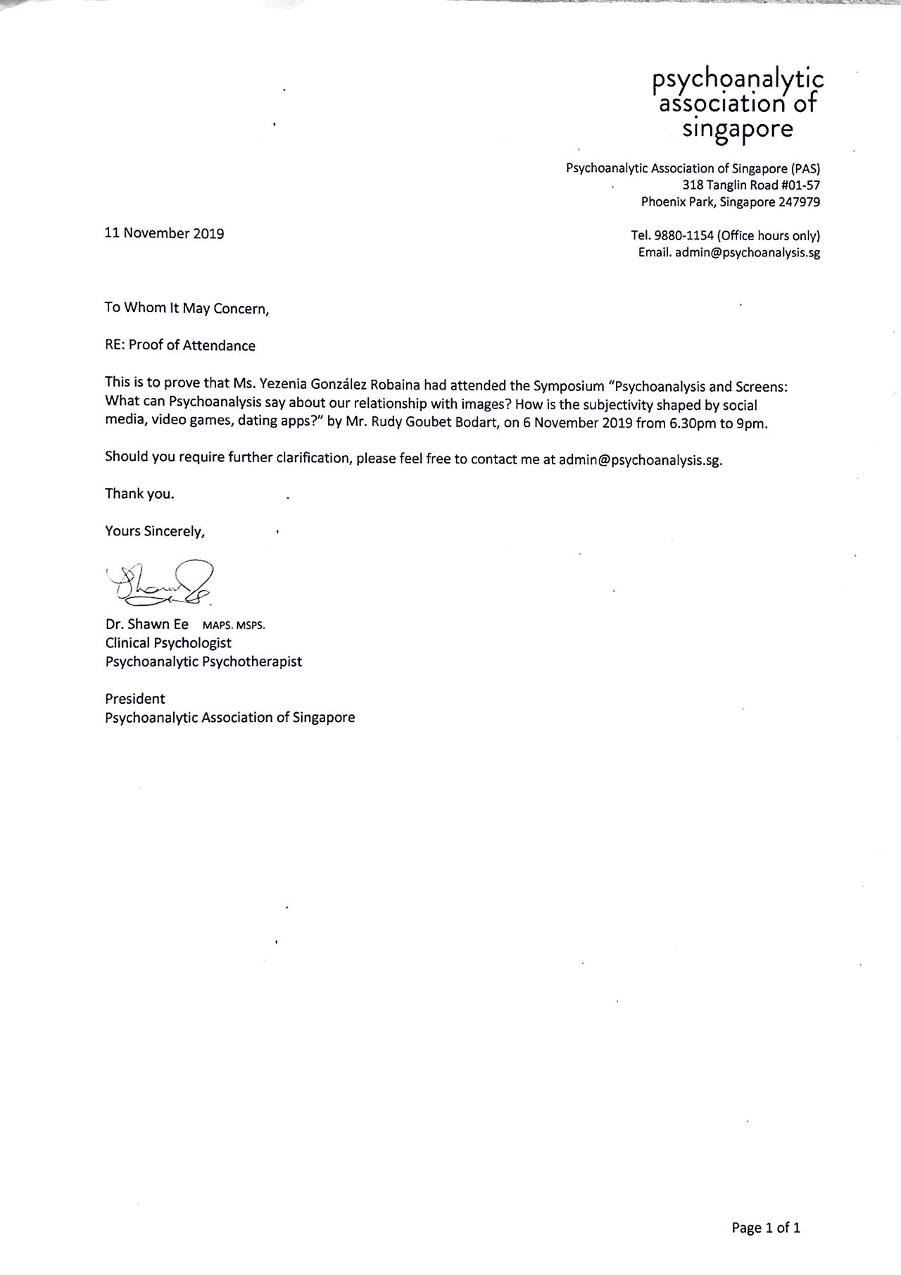 -Máster de Psicoterapia en la Asociación Escuela de Clínica Psicoanalítica con niños y adolescentes de Madrid.