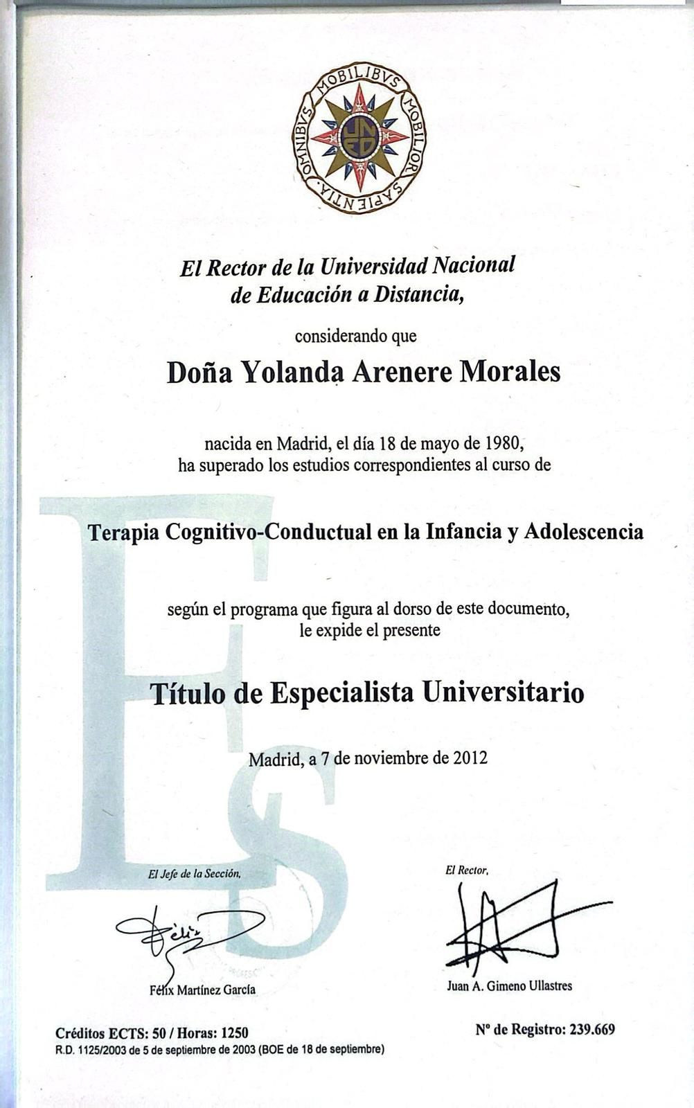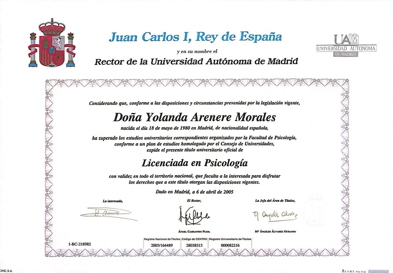 ¿Cuáles son las principales especialidades de Yolanda Arenere morales?Yolanda Arenere morales es psicóloga. Te mostramos algunos de los servicios que ofrece gracias a su trayectoria y amplia experiencia: Primera visita Psicología, Psicoterapia en adolescentes, Visitas sucesivas Psicología, Reestructuración cognitiva, Psicoterapia individual, Diagnóstico y tratamiento para trastornos de ansiedad, Terapia cognitivo-conductual, Entrevista Psicológica Adultos, Estrés laboral y conciliación familiar, Consulta online.