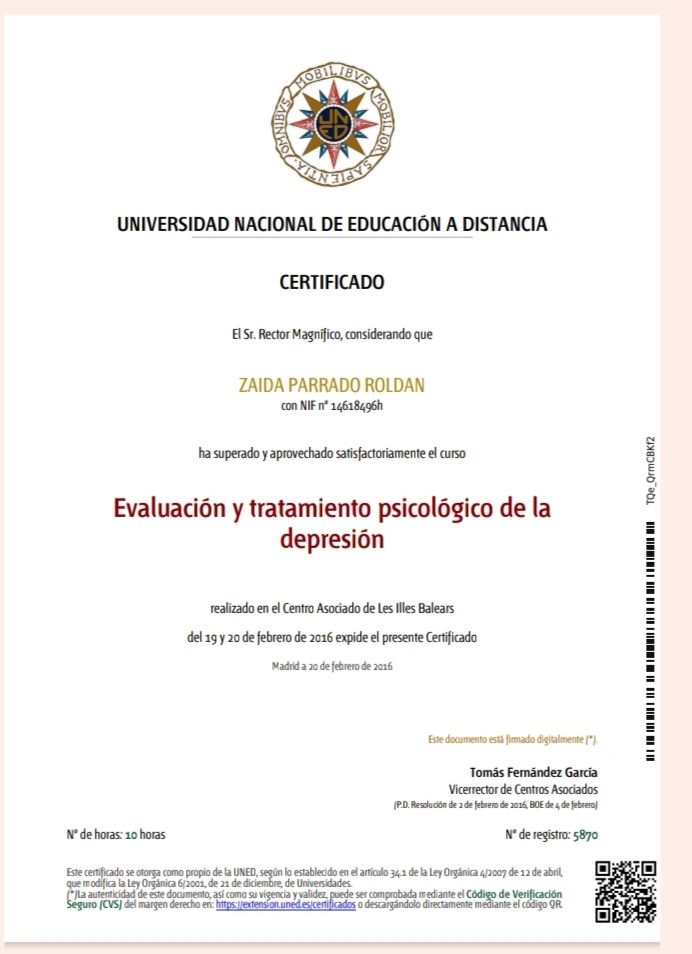 Quiero agradecer profundamente a Zaida por su apoyo y dedicación. Gracias a su profesionalismo y empatía, he podido superar muchos de mis obstáculos y sentirme mejor conmigo misma. Su ayuda ha sido clave en mi proceso y me siento muy agradecida por todo lo que ha hecho por mí.